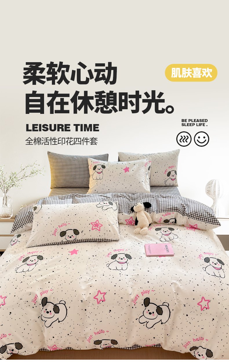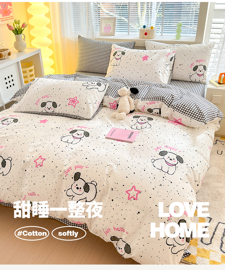 清雅福 2024新款全棉13372小清新四件套-第三季 布丁狗