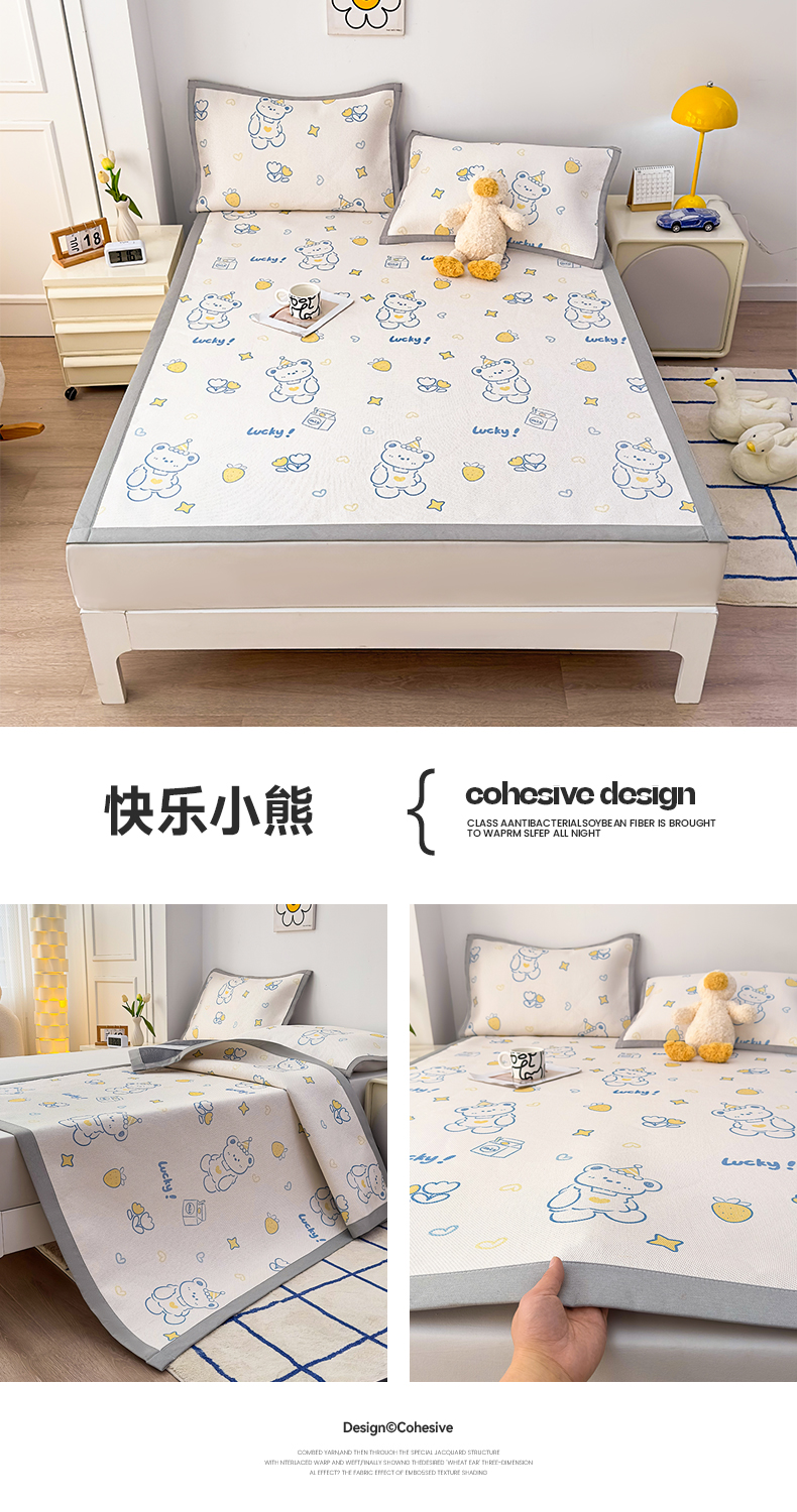 商品名称:大元 2025新款数码印花冰藤席系列 -冰藤条席 快乐小熊