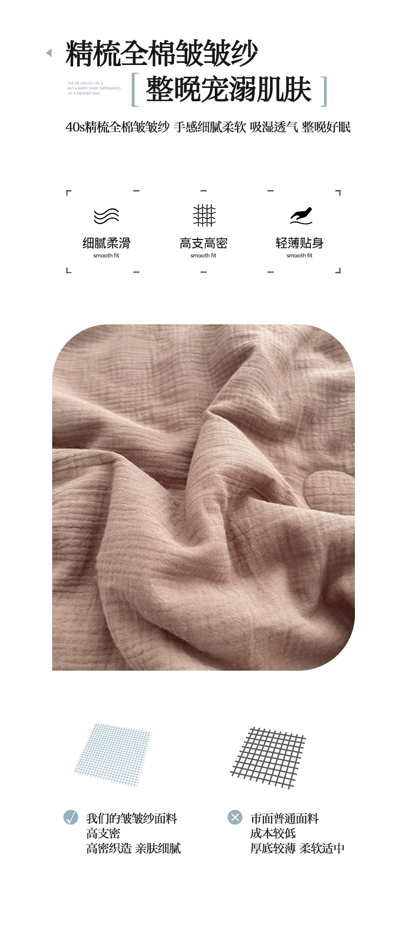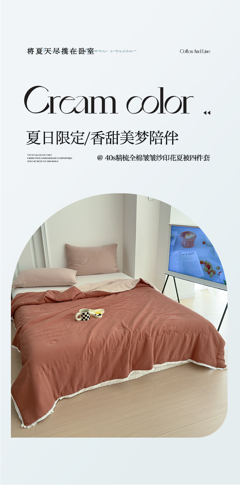 当前位置: 91家纺网 > 商品网购 > 床品套件 > 四件套 > 夏被四件套 > 山舍家居 2024新款全棉皱皱纱夏被四件套 摩卡