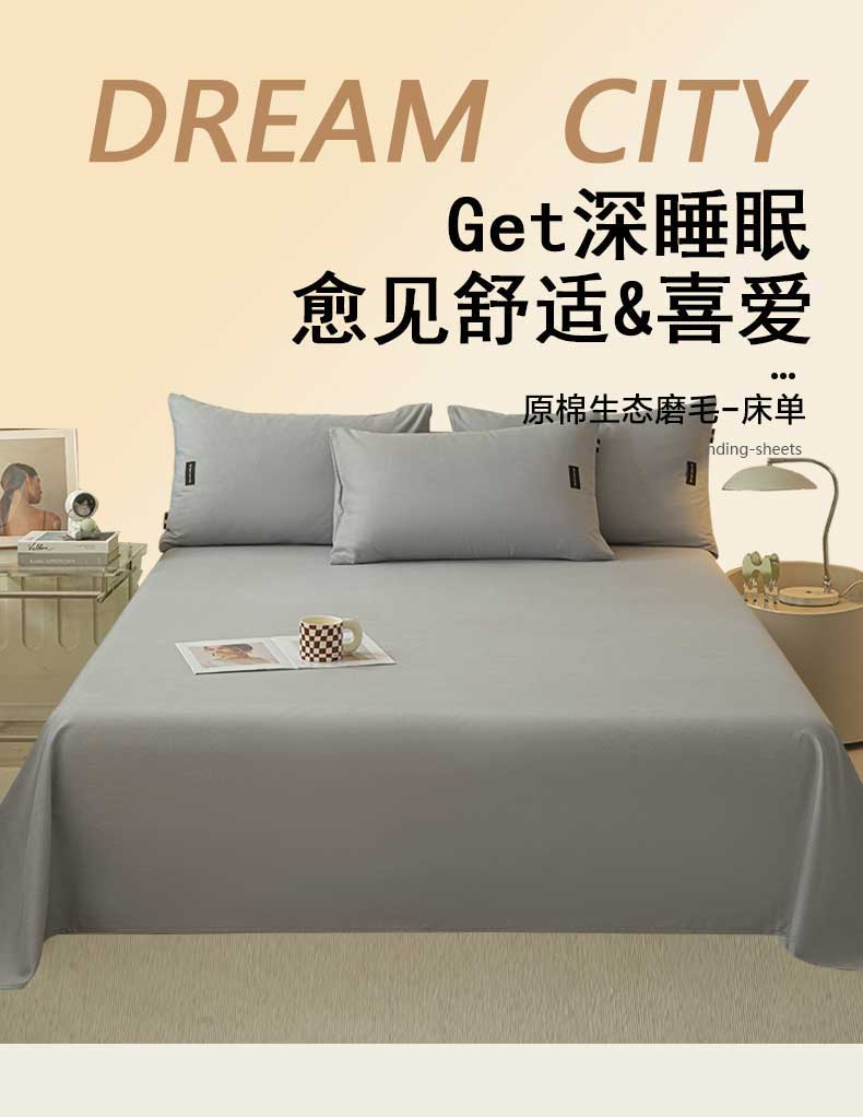 涵宸家纺 2024新款原棉纯色织标磨毛单品及套件--床单 单床单-浅灰