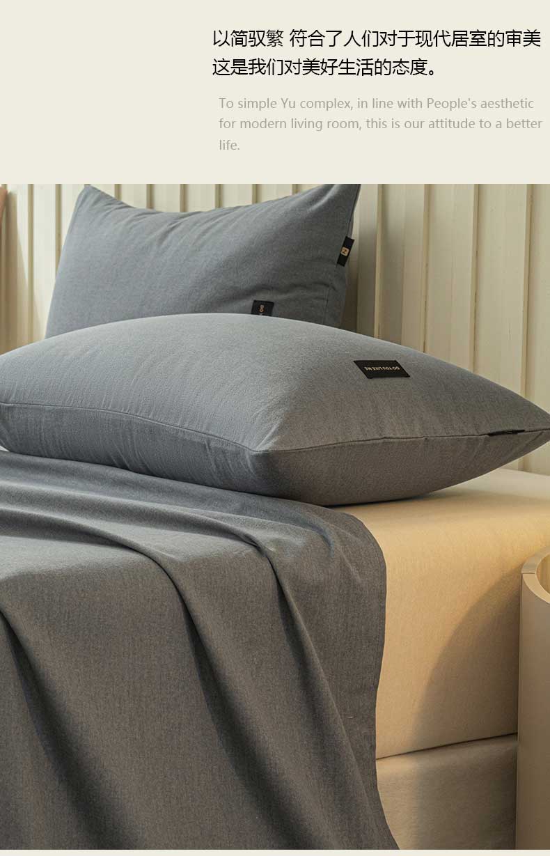 涵宸家纺 2024新款原棉纯色织标磨毛单品及套件--枕套 单枕套-深灰