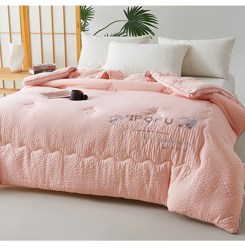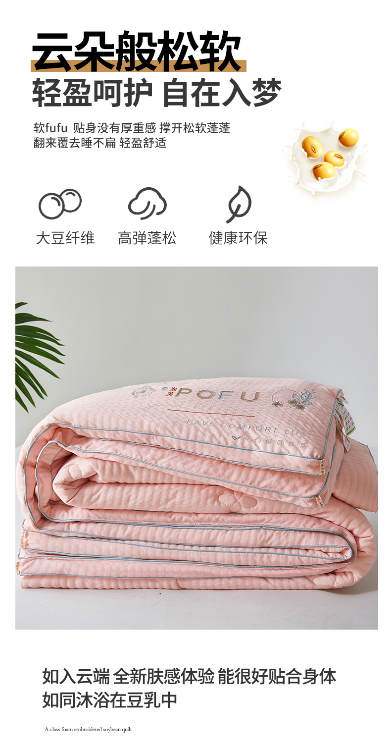 爱宝被业 2025新款泡芙棉刺绣被被 泡芙棉-柔肤粉