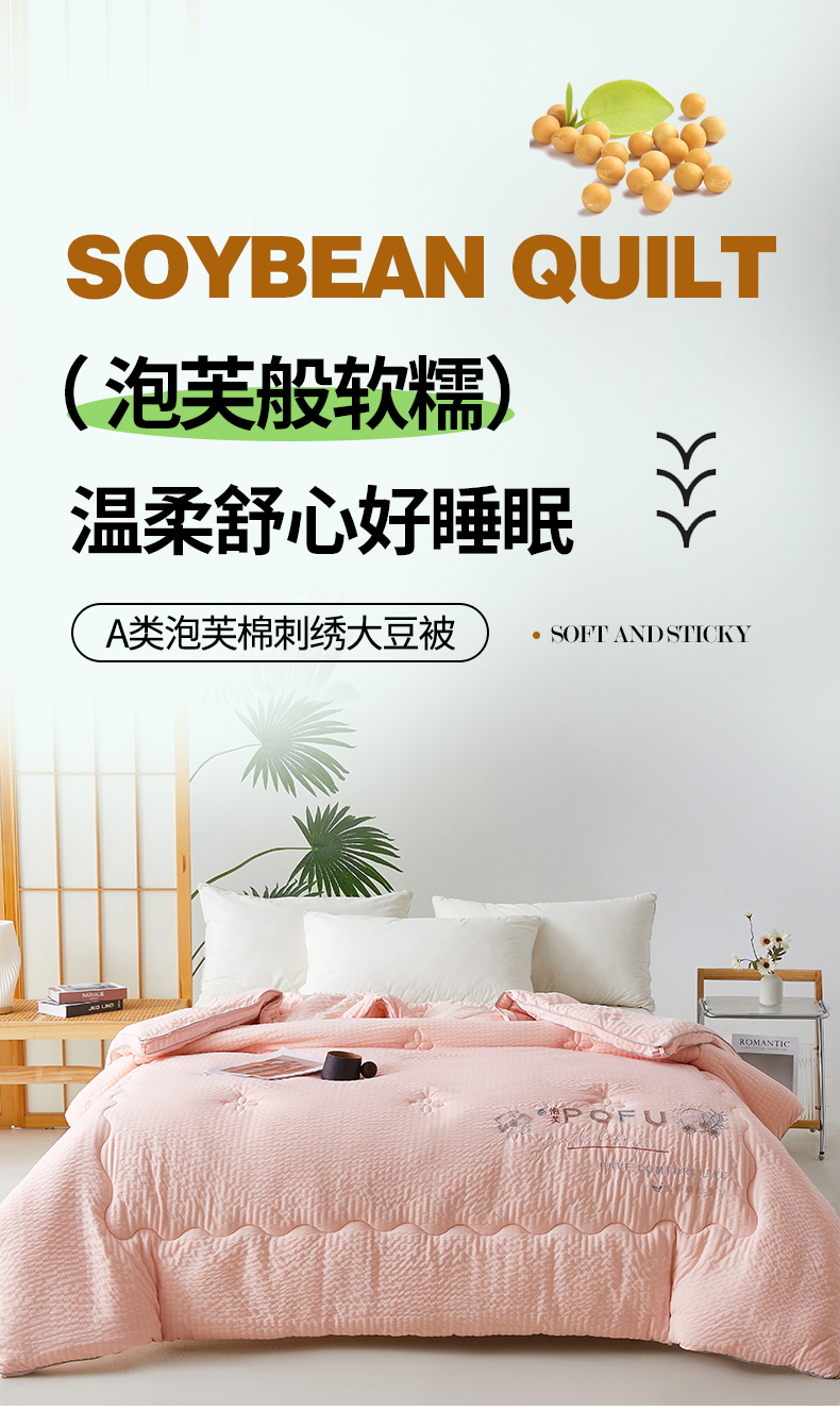 • 91家纺网 家纺一手货源 找家纺 爱宝被业 2025新款泡芙棉刺绣被被 泡芙棉-柔肤粉