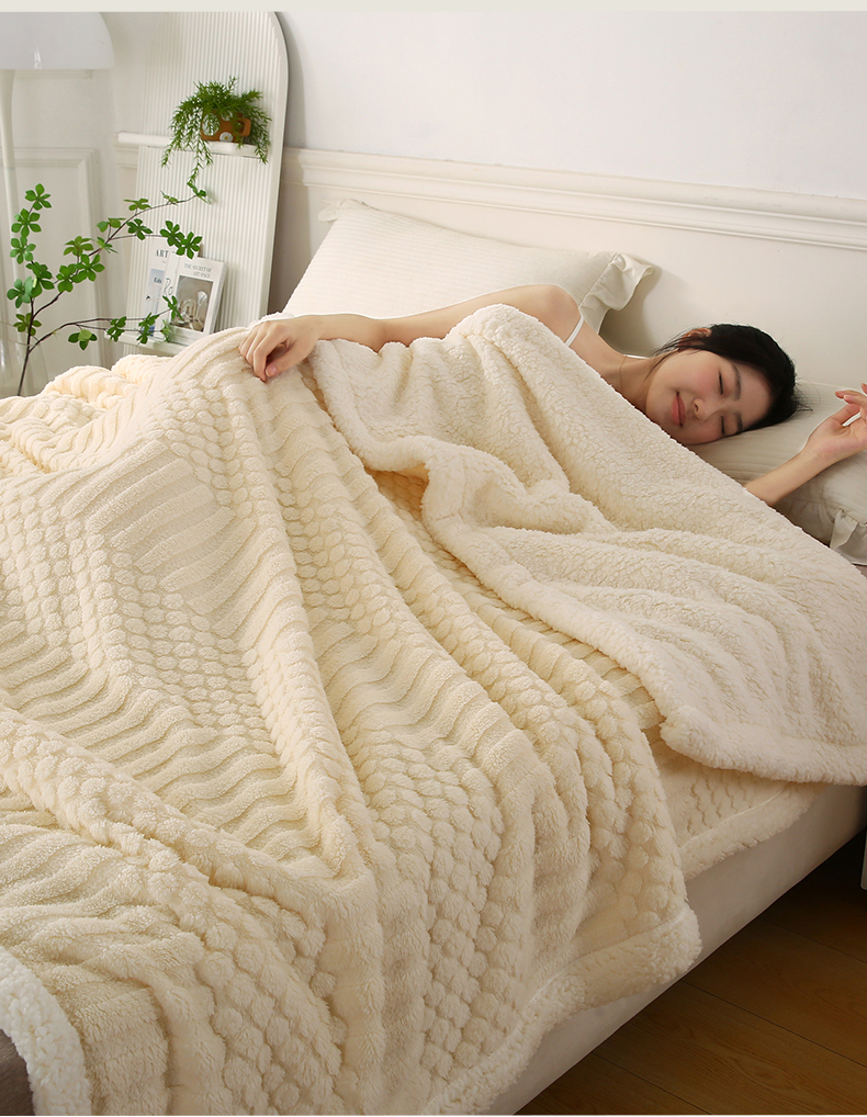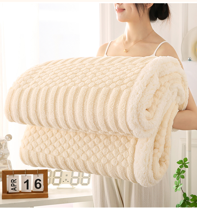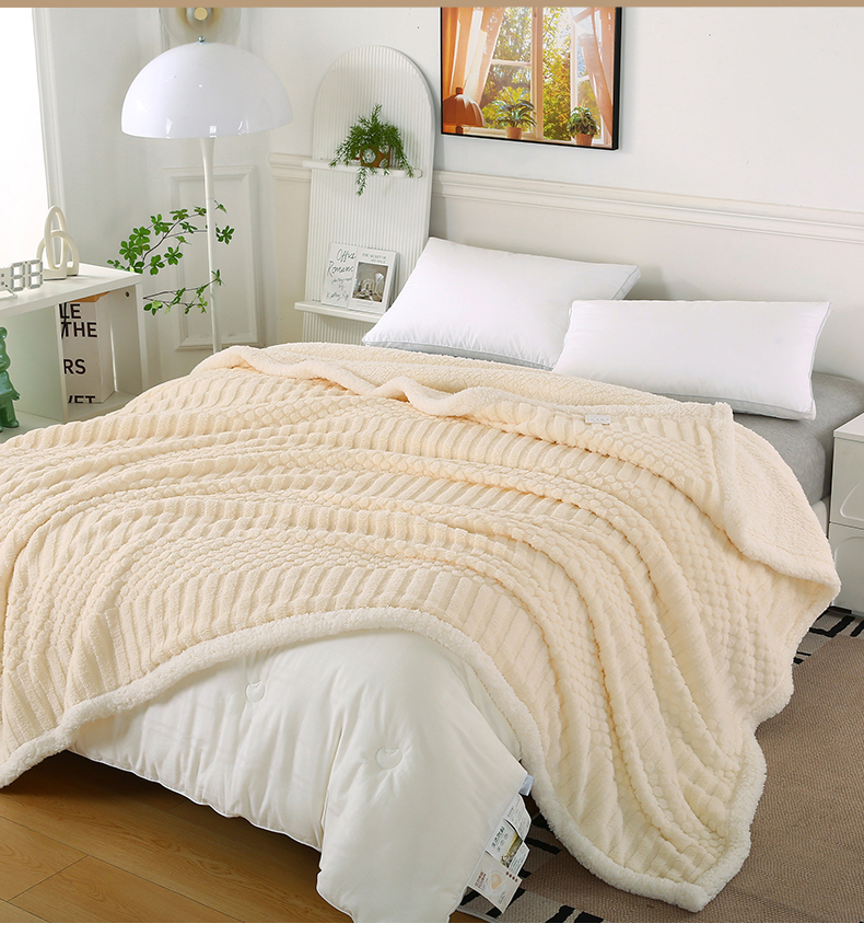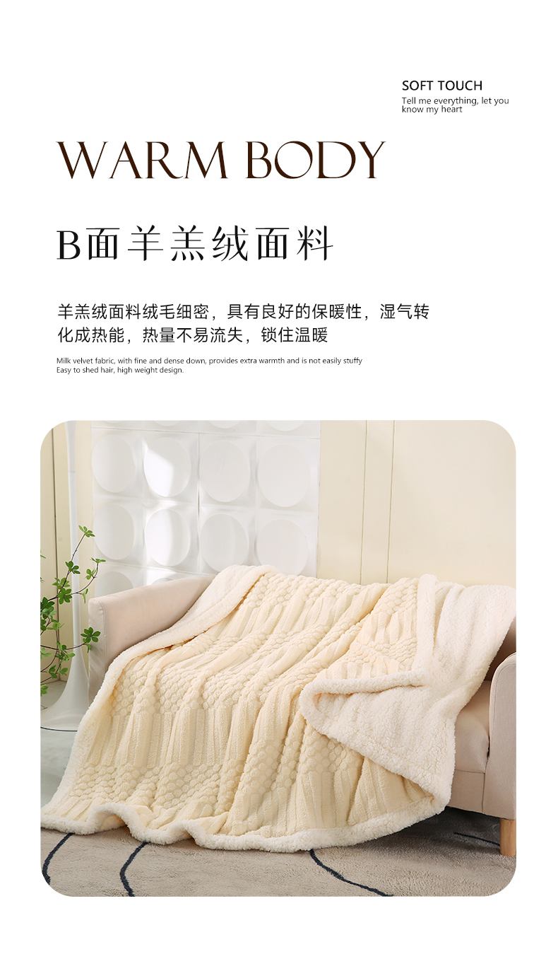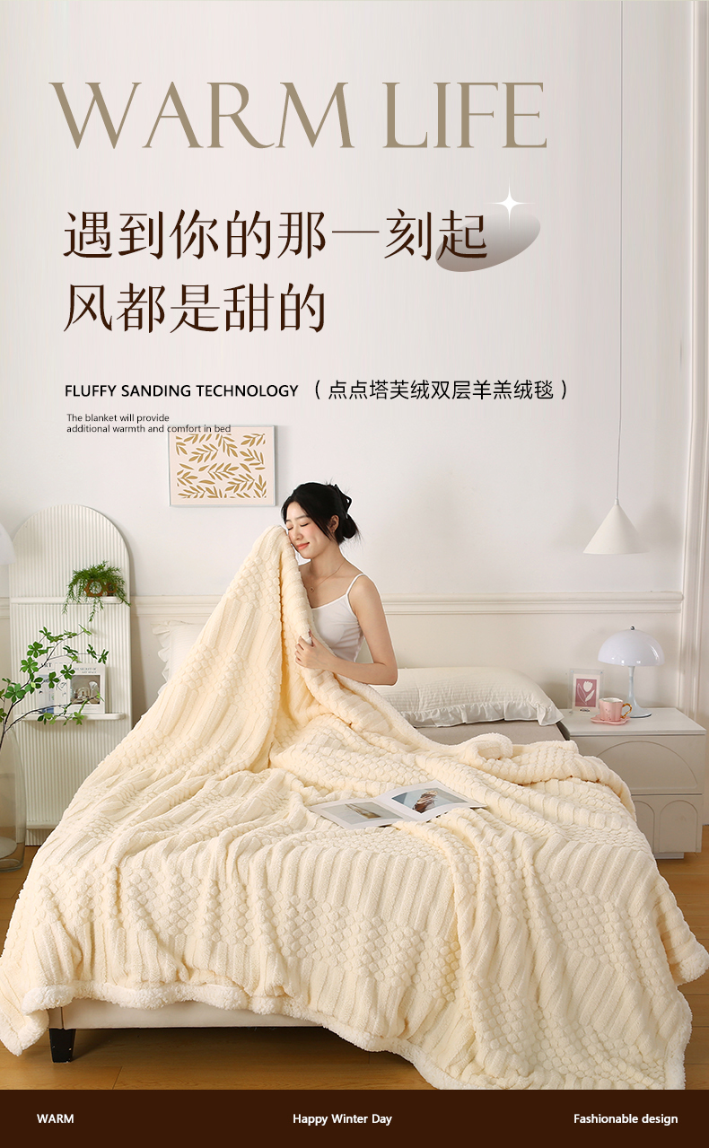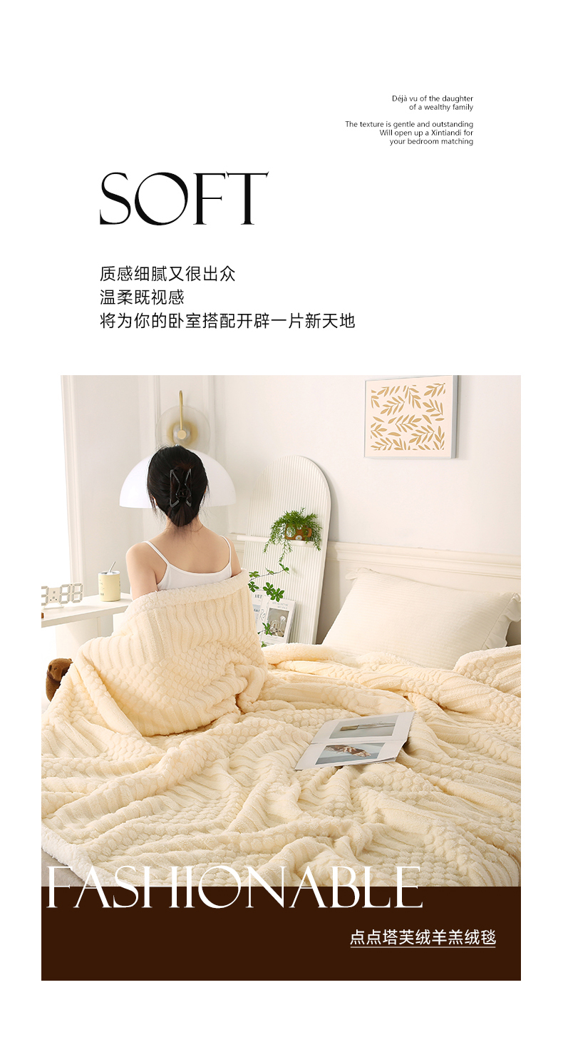 商品名称:巴木赫 2024新款舒棉绒点点塔芙绒双层羊羔绒毯 米白