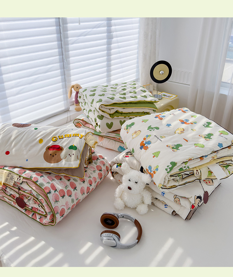 (总)太阳树家纺 2025新款A类母婴级双层纱大豆被大豆纤维夏被,草莓酪,不二家,蛋糕猫,花园兔,恐龙星球,曼塔玫瑰,玫瑰花园,奶芙汪汪,南岛小镇,兔sweet,小橘子,小熊院长