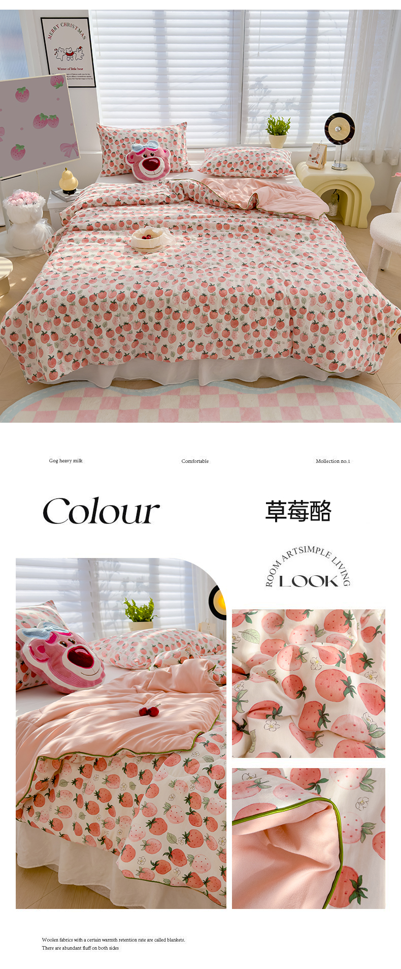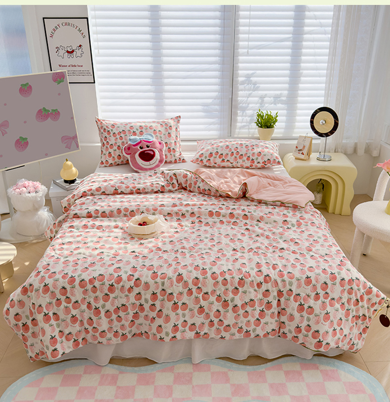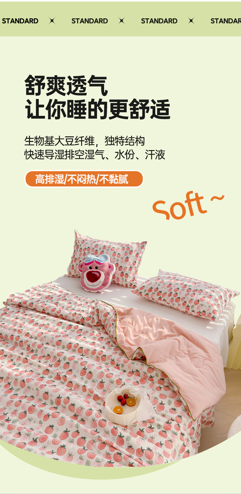 商品名称:太阳树家纺 2025新款A类母婴级双层纱大豆被大豆纤维夏被 草莓酪