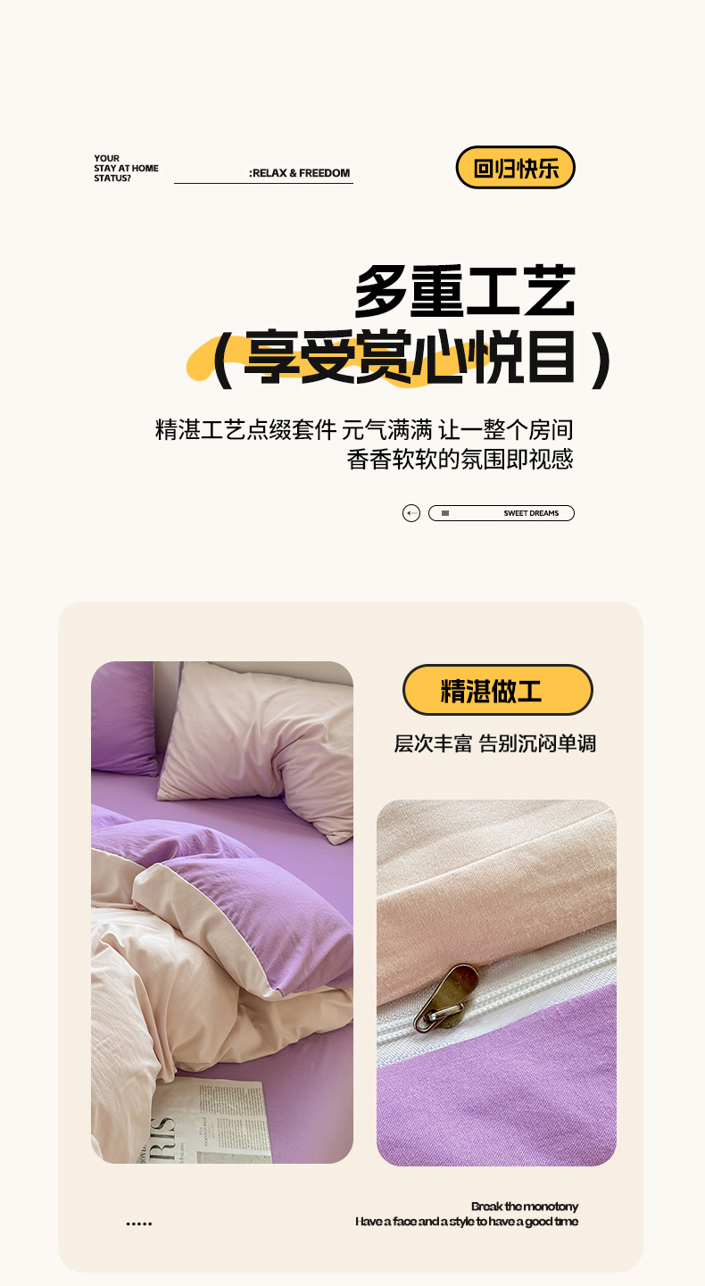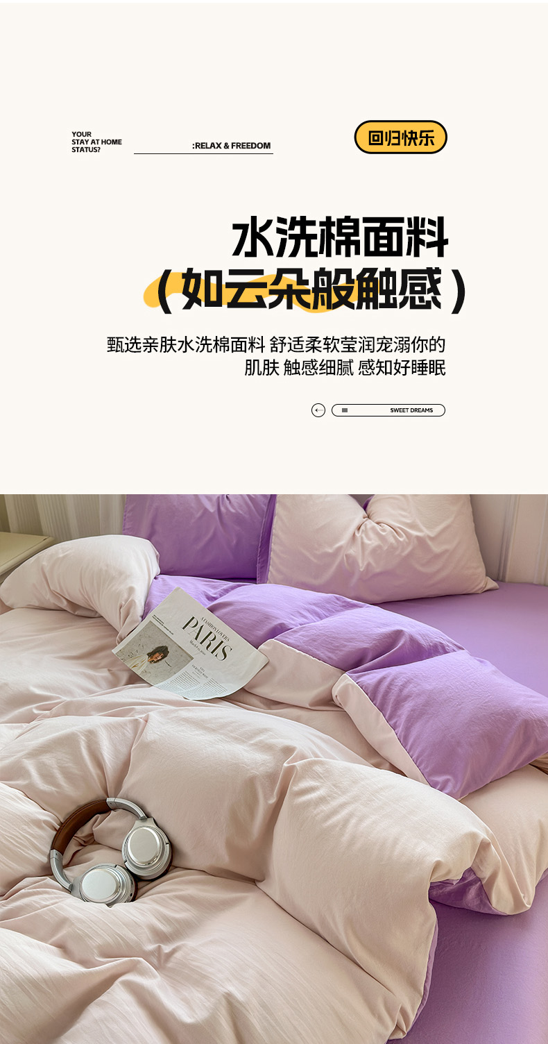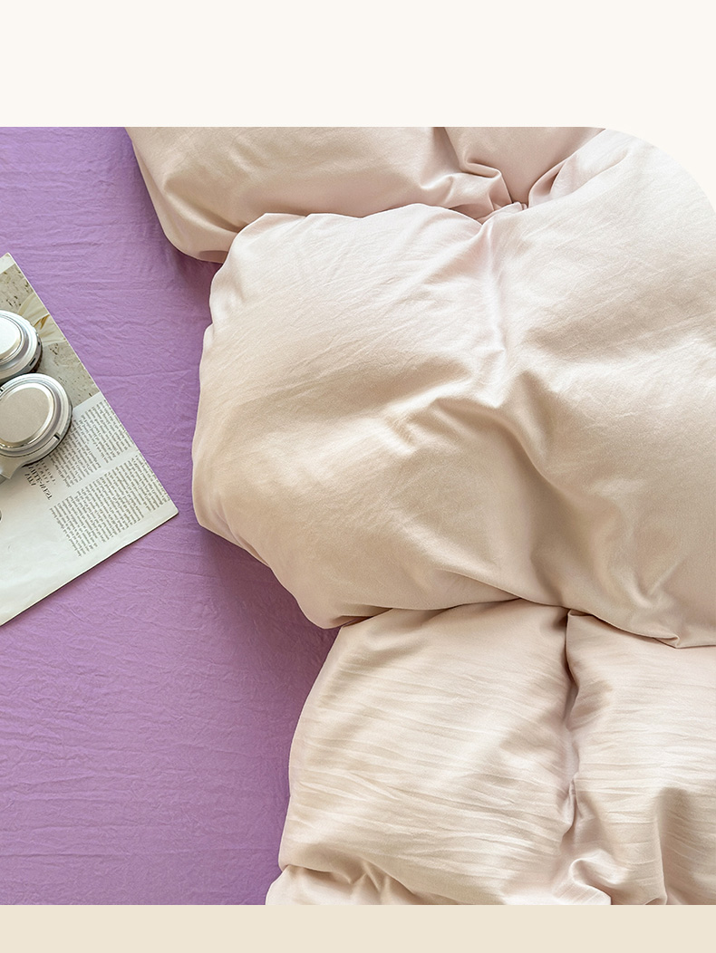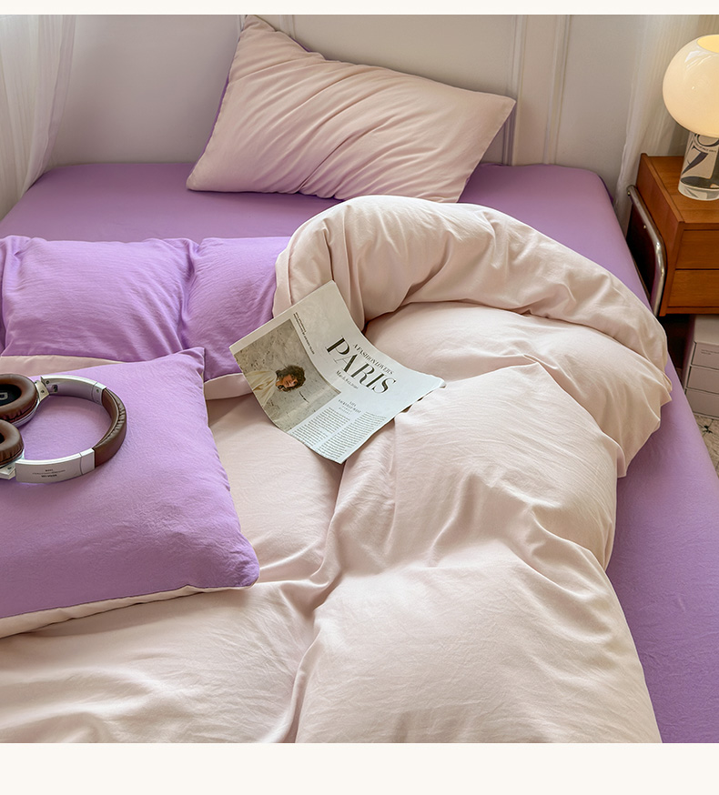 商品名称:冕悠家纺 2025新款A类105克超柔褶皱水洗棉拼色四件套-单被套 藕粉+丁香紫