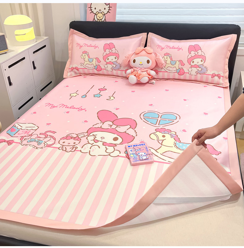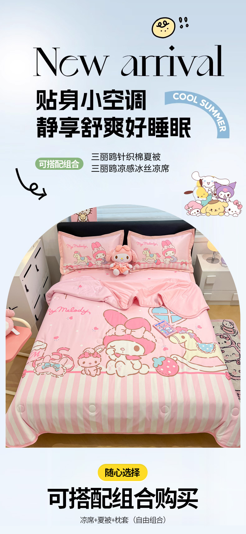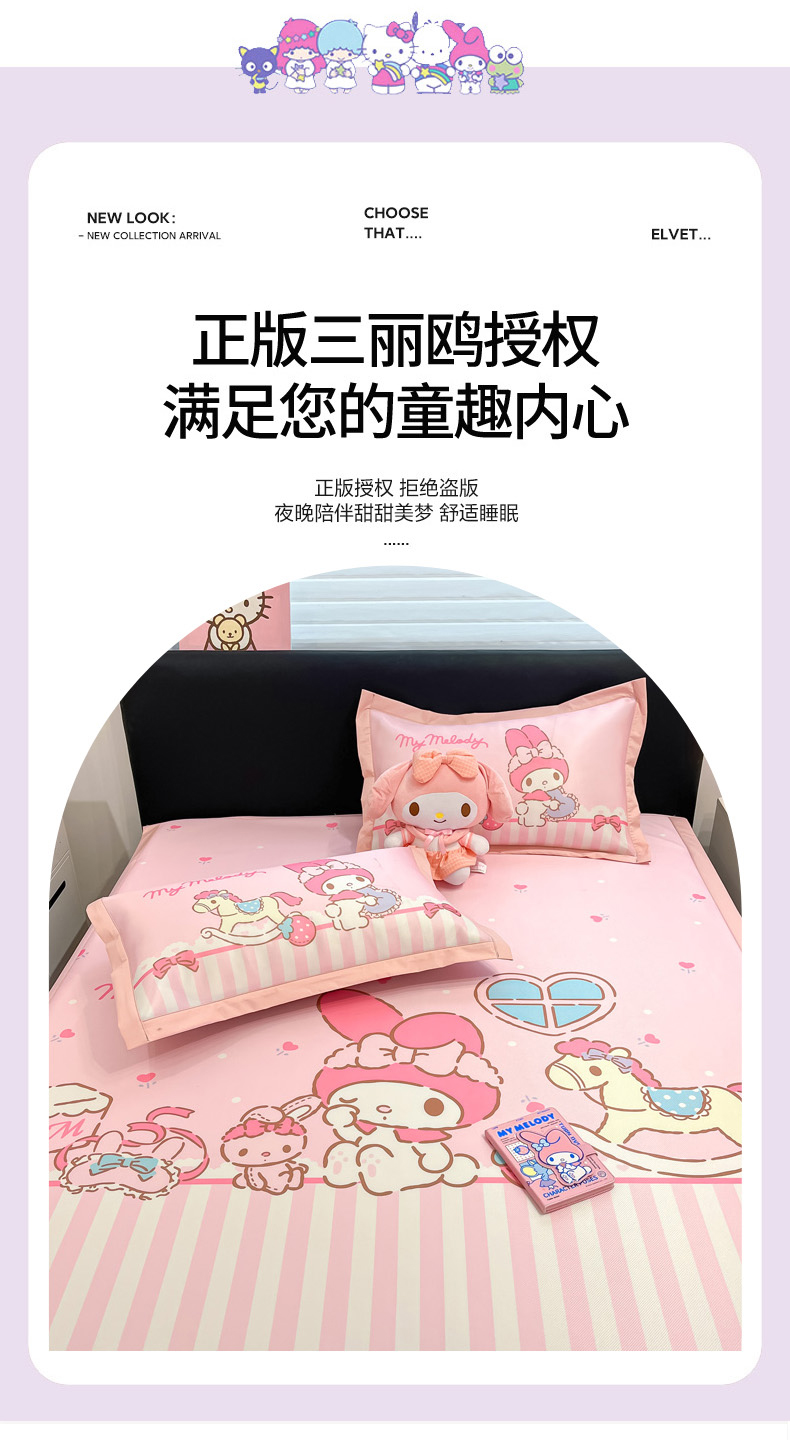 当前位置: 91家纺网 > 商品网购 > 床品套件 > 四件套 > 其它四件套 > 2025新款正版授权A类大版数码印花三丽鸥可机洗1200D冰丝凉席席子凉席可组合针织棉夏被四件套-平铺款 平铺款-条纹美乐蒂