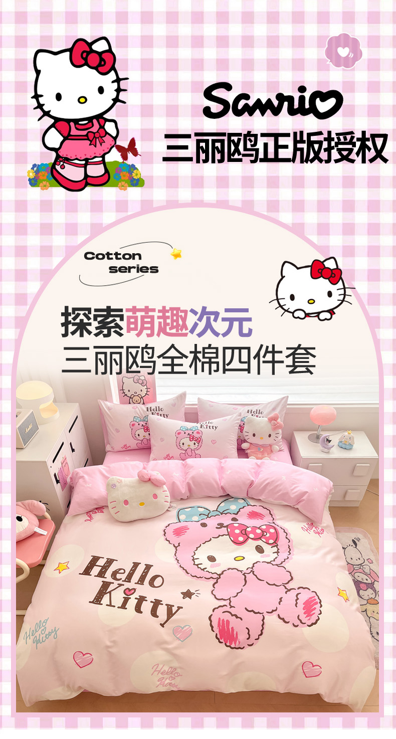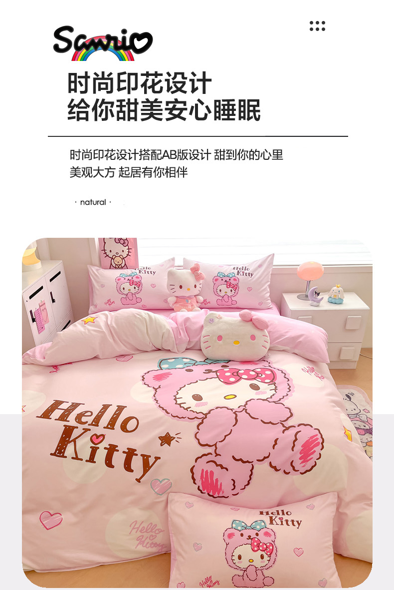 当前位置: 91家纺网 > 商品网购 > 床品套件 > 四件套 > 全棉普通四件套 > 暮思家居 2025新款正版授权三丽鸥大版全棉纯棉数码印花四件套系列-第四批 大版-babyKitty