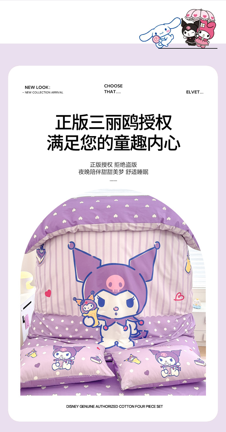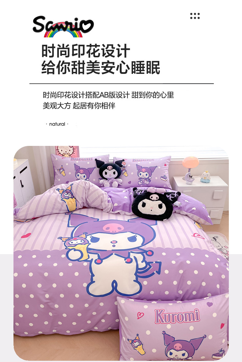 当前位置: 91家纺网 > 商品网购 > 床品套件 > 四件套 > 全棉普通四件套 > 暮思家居 2025新款正版授权三丽鸥大版全棉纯棉数码印花四件套系列-第四批 大版-甜筒库洛米