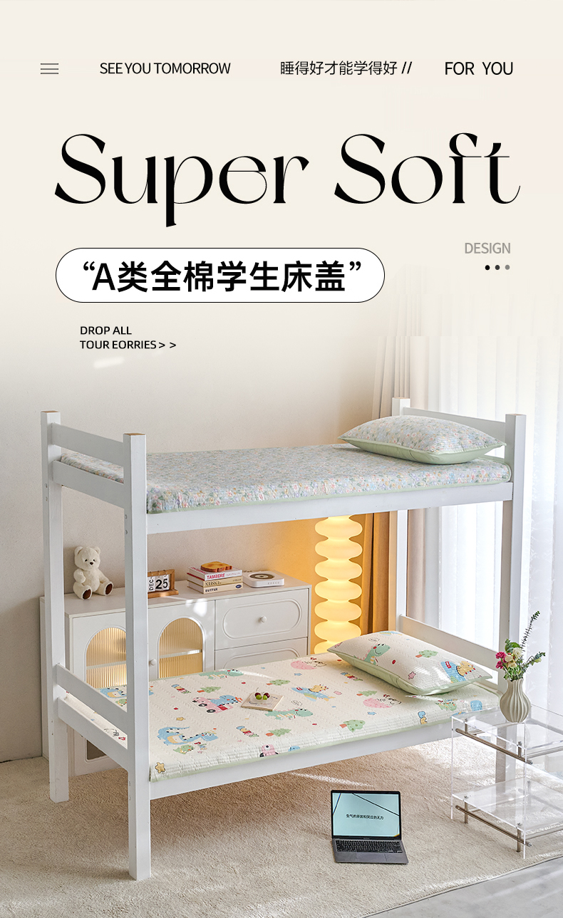 • 91家纺网 家纺一手货源 找家纺 X猫先生 2025小清新全棉学生床盖-新增花型 萌龙乐眠
