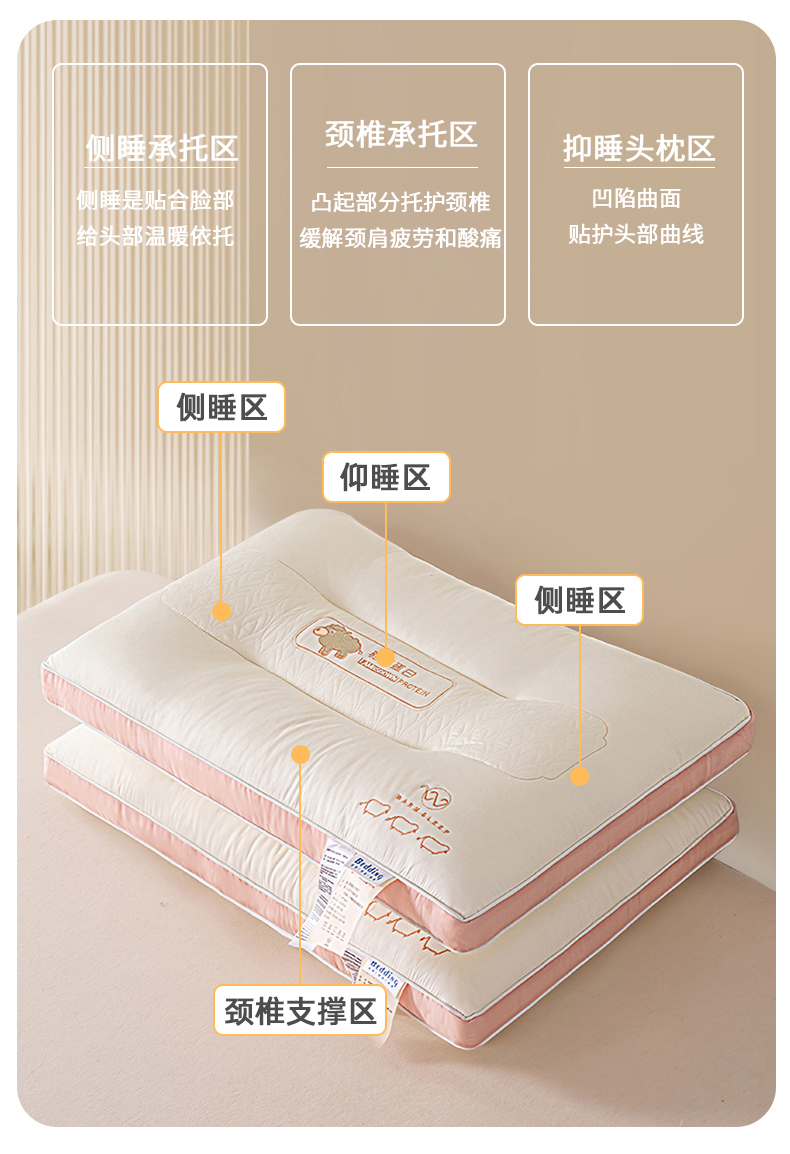 当前位置: 91家纺网 > 商品网购 > 枕头/枕芯/保健枕/颈椎枕 > 普通枕芯 > 蝶飞舞 2025新款羊绒蛋白枕头枕芯直播专供立体刺绣护颈枕芯 驼绒蛋白粉1000g 48*74cm