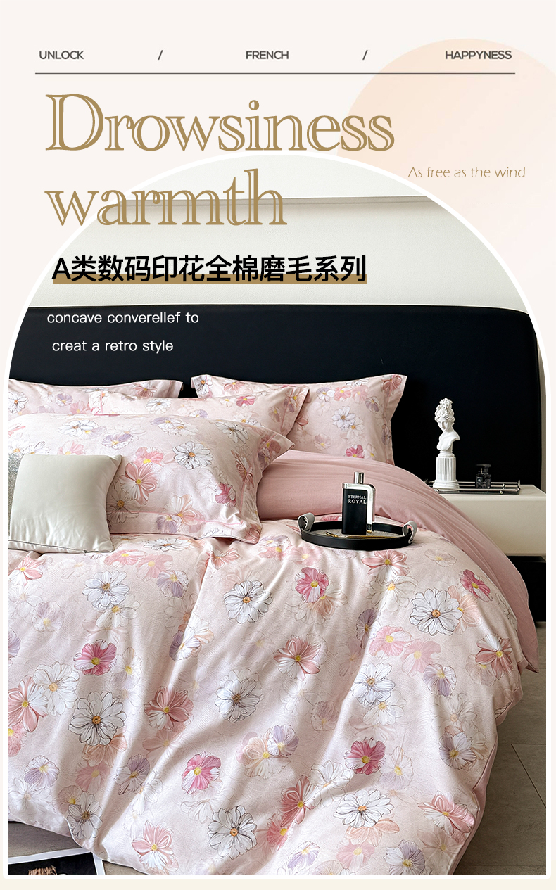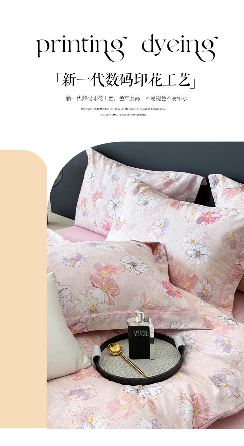 当前位置: 91家纺网 > 商品网购 > 床品套件 > 四件套 > 普通磨毛四件套 > 清雅福2025新款A类全棉磨毛数码印花四件套 双花飘香