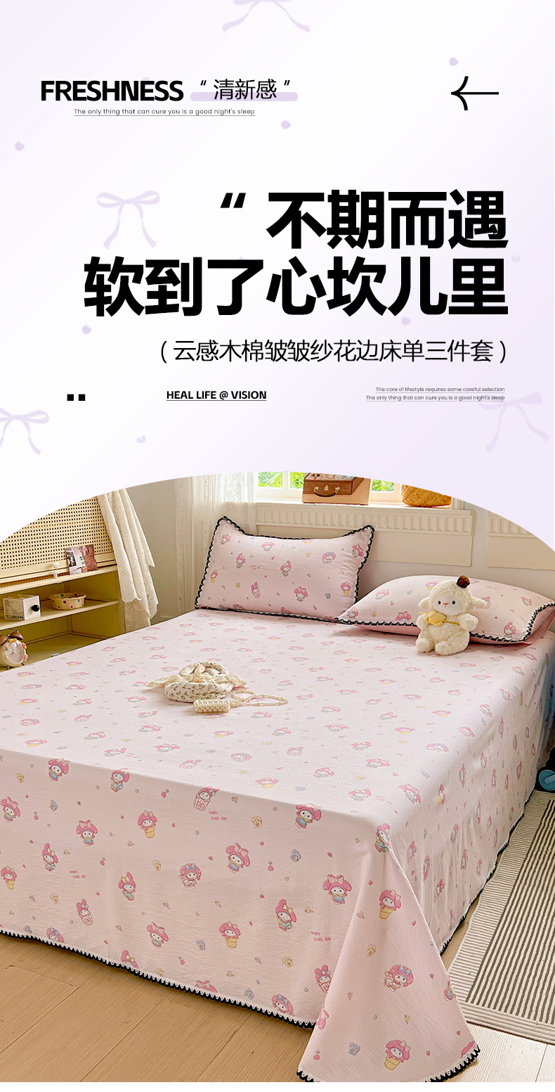 逸林家纺《原希尔顿逸林》 2025新款云感皱皱纱镂空花边床单单品床单单件单床单 小鸥