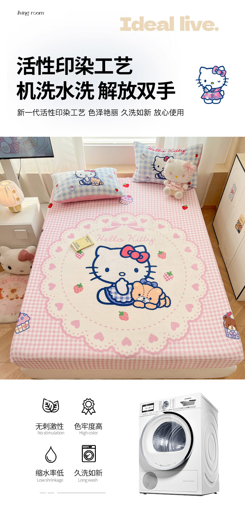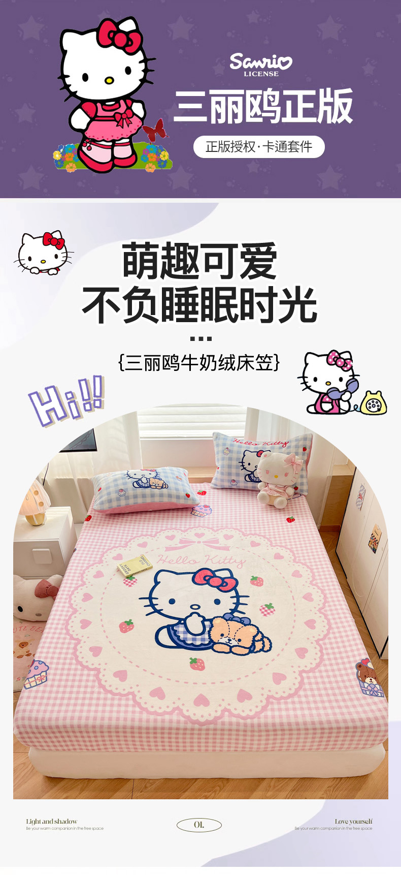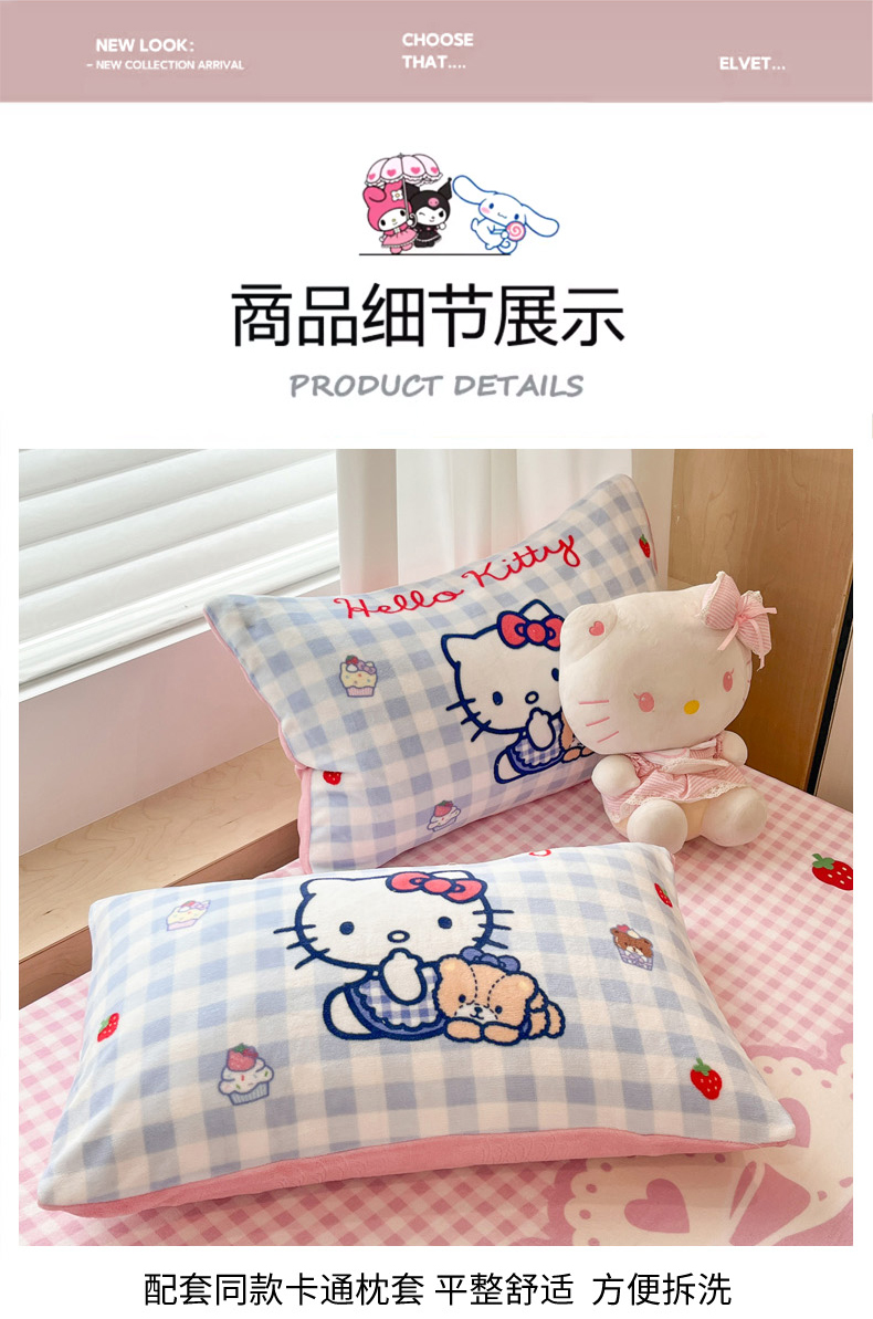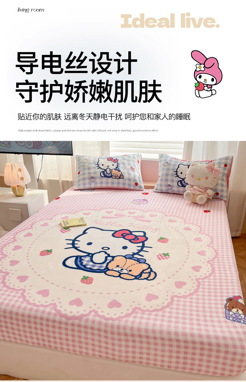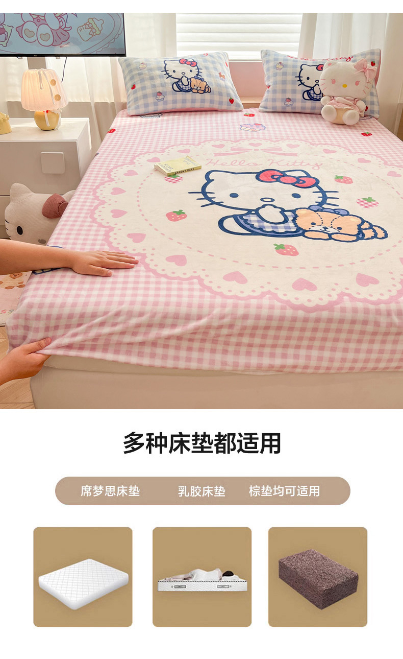 商品名称:暮思家居 2025新款正版授权三丽鸥大版牛奶绒数码印花单品床笠单件床笠(带标价格) 绒A版-奶油KT