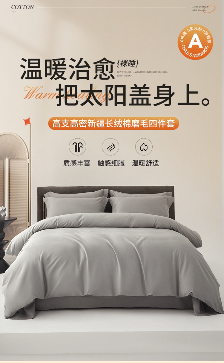 当前位置: 91家纺网 > 商品网购 > 床品套件 > 四件套 > 长绒棉四件套 > 柔觉家纺 新款50*50双股长绒棉纯色磨毛四件套 雅致银