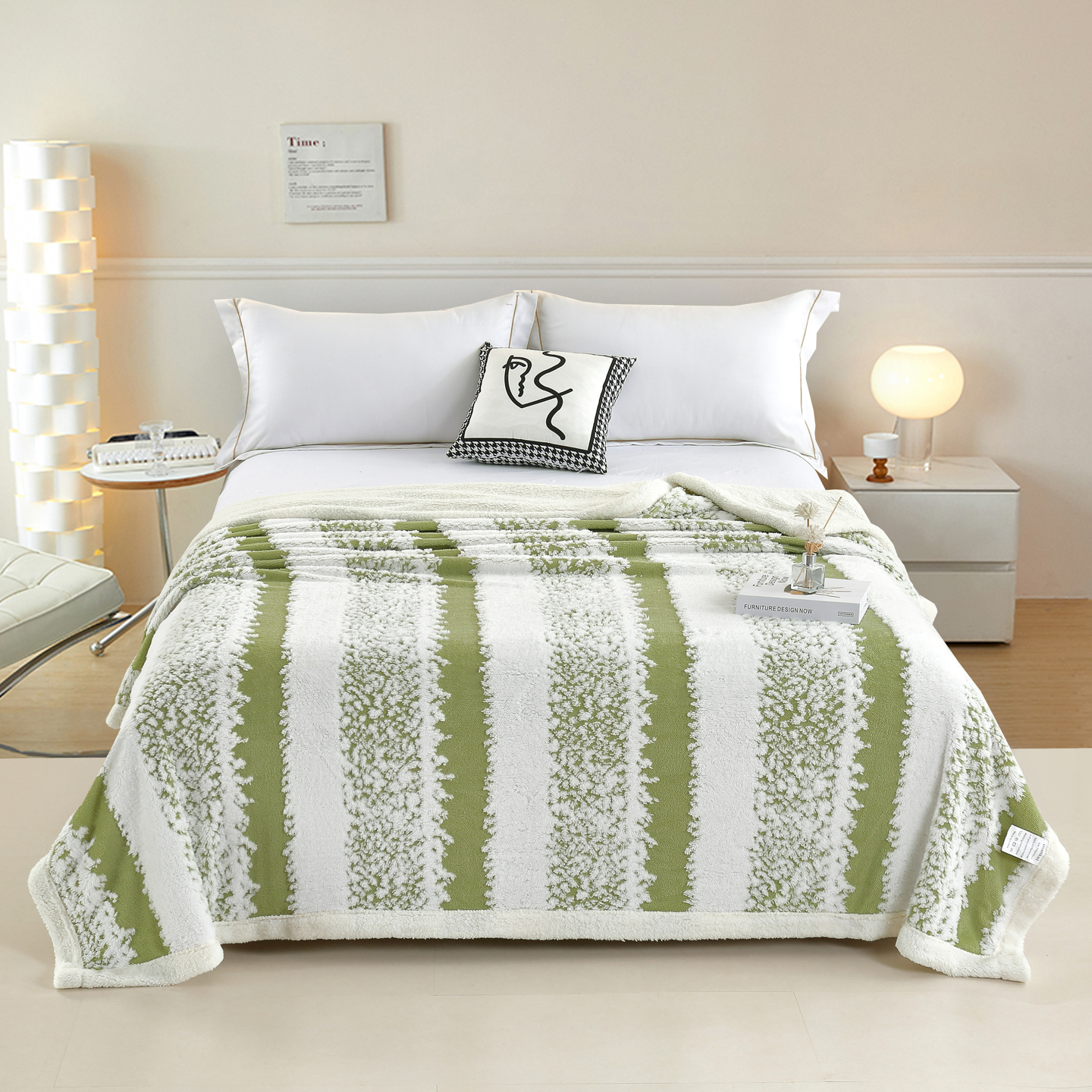 (总)巴木赫 2024新款提花朵朵绒双层羊羔绒毯,茶绿,粉色,咖啡,孔雀蓝,浅灰,浅驼