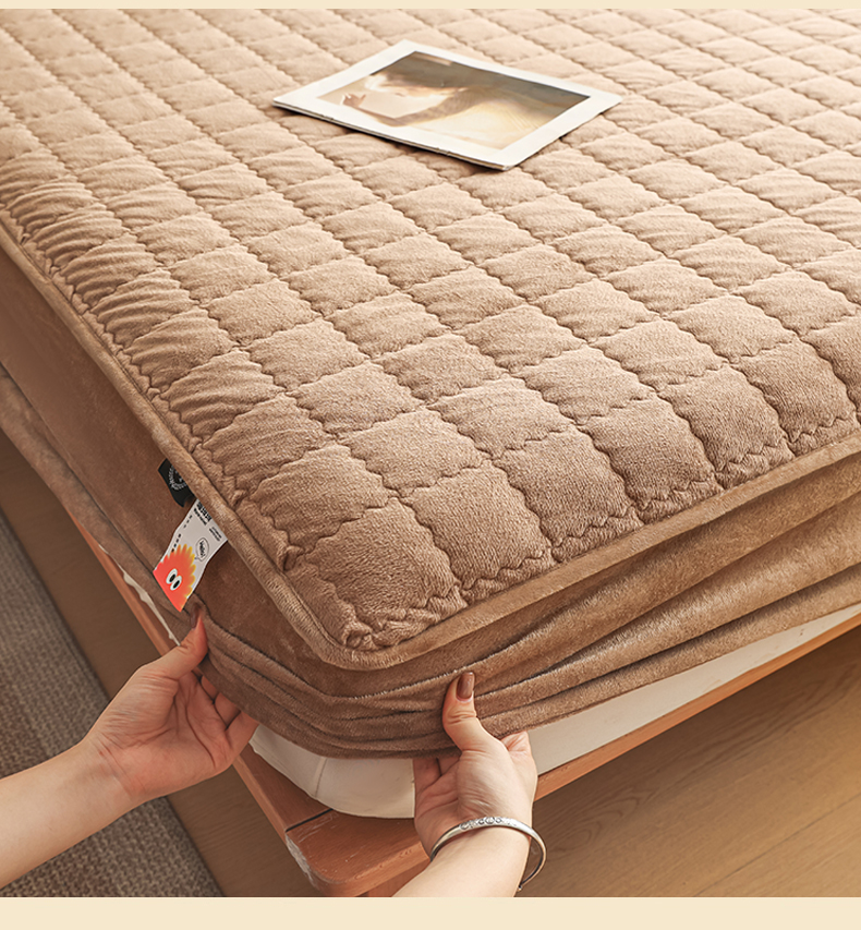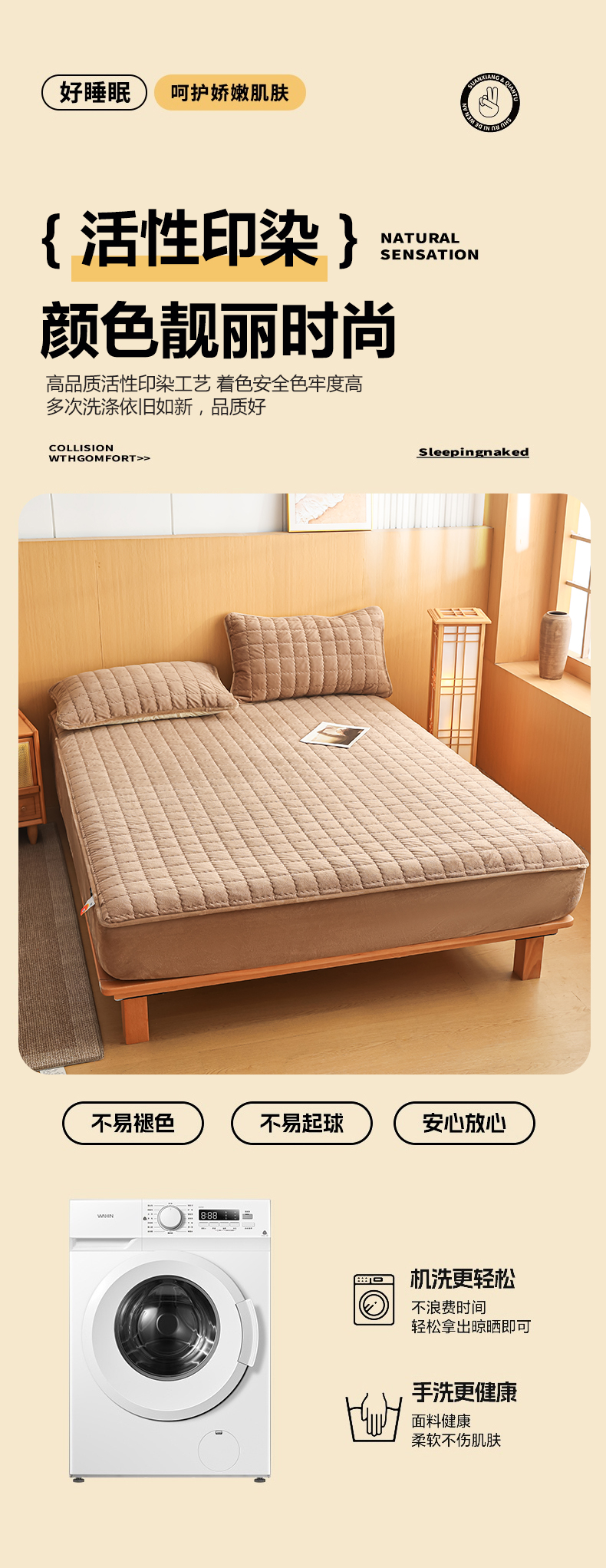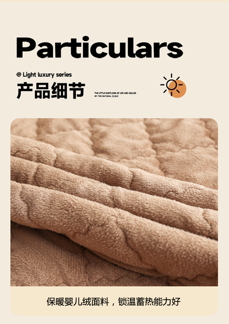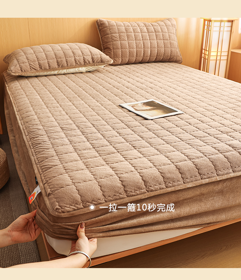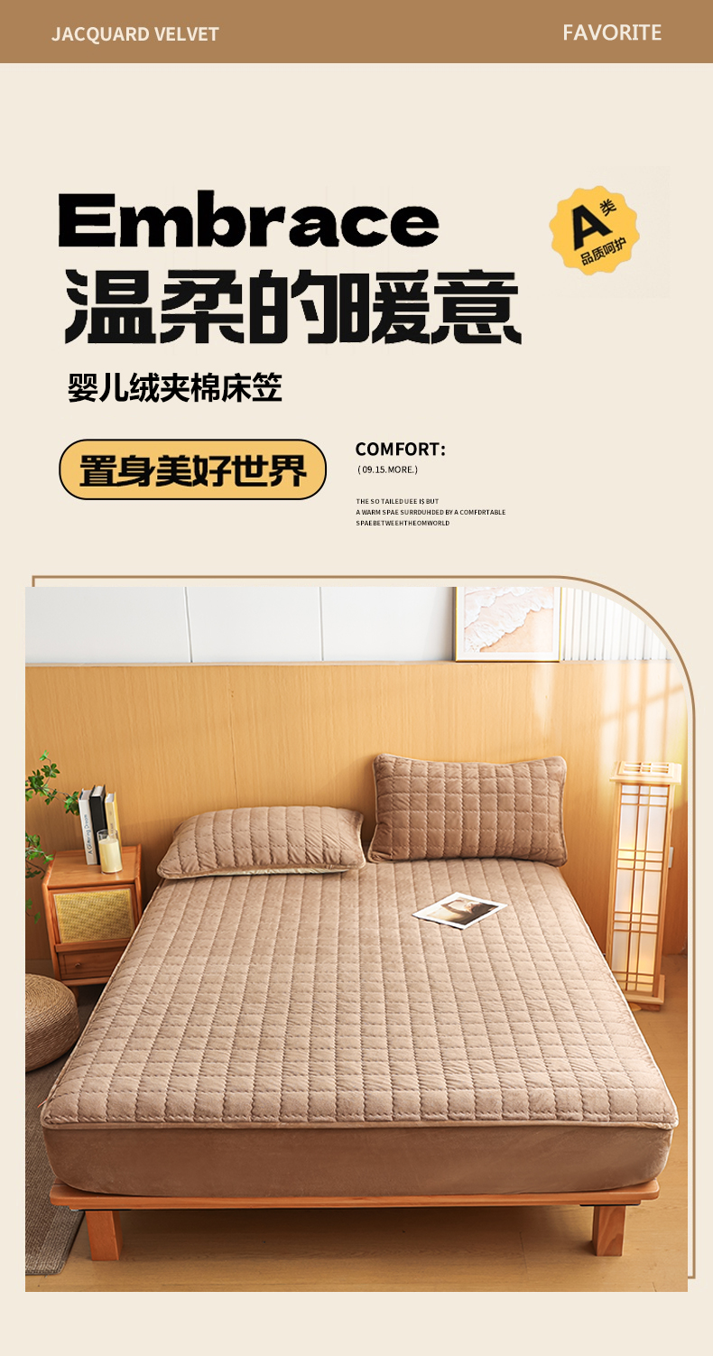 潮邦创意家居 2025新款婴儿绒夹棉床笠单品单件床垫保护套 卡其