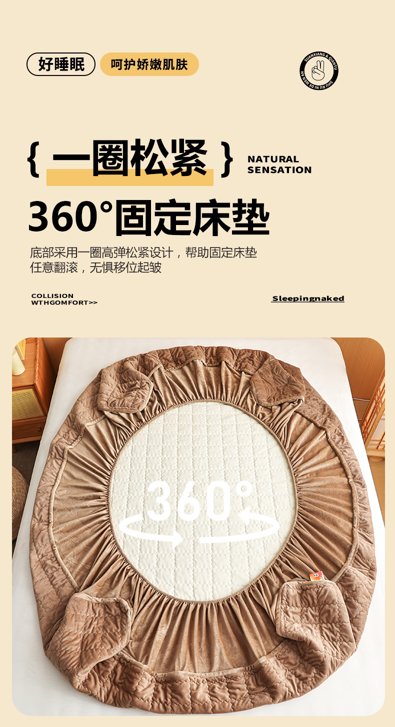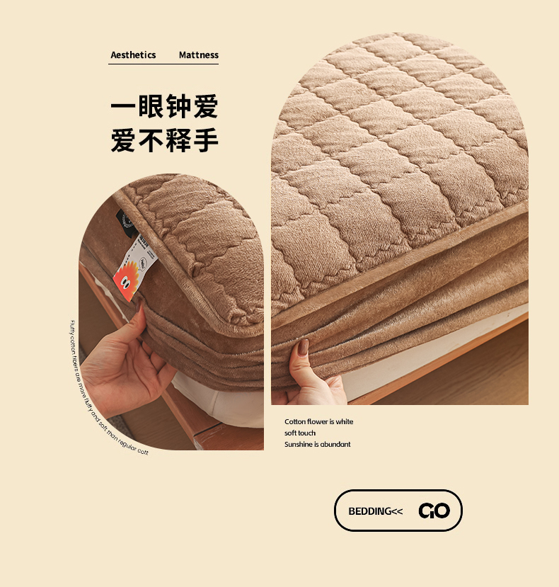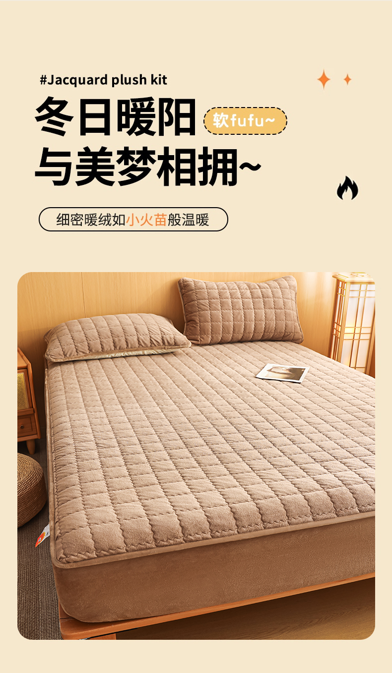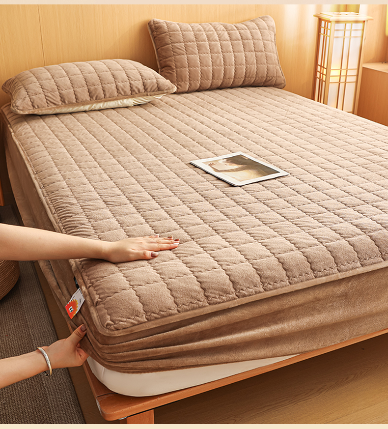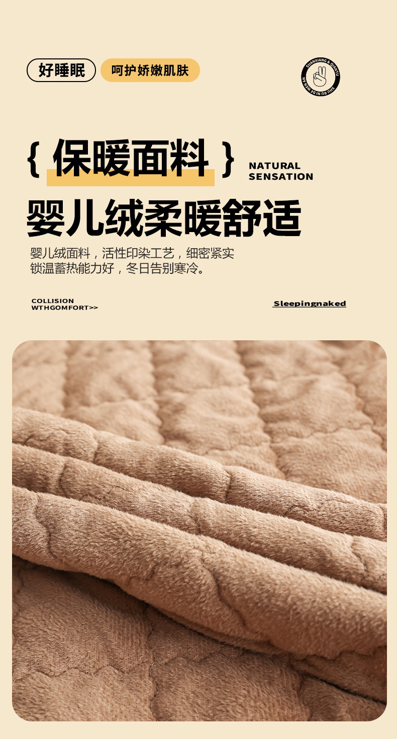 潮邦创意家居 2025新款婴儿绒夹棉床笠单品单件床垫保护套 卡其