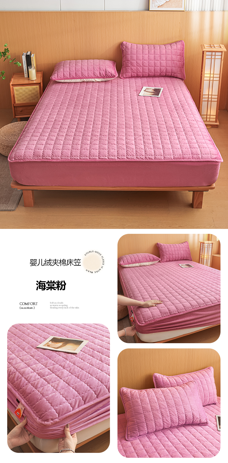 (总)潮邦创意家居 2025新款婴儿绒夹棉床笠单品单件床垫保护套,卡其,海棠粉,芋泥紫,星空灰,宾利蓝