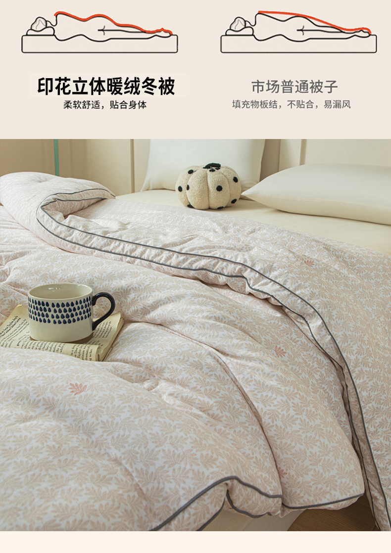 (总)大世界被王 2025新款印花立体暖绒冬被被子被芯,叶韵咖,极简圆纹-灰