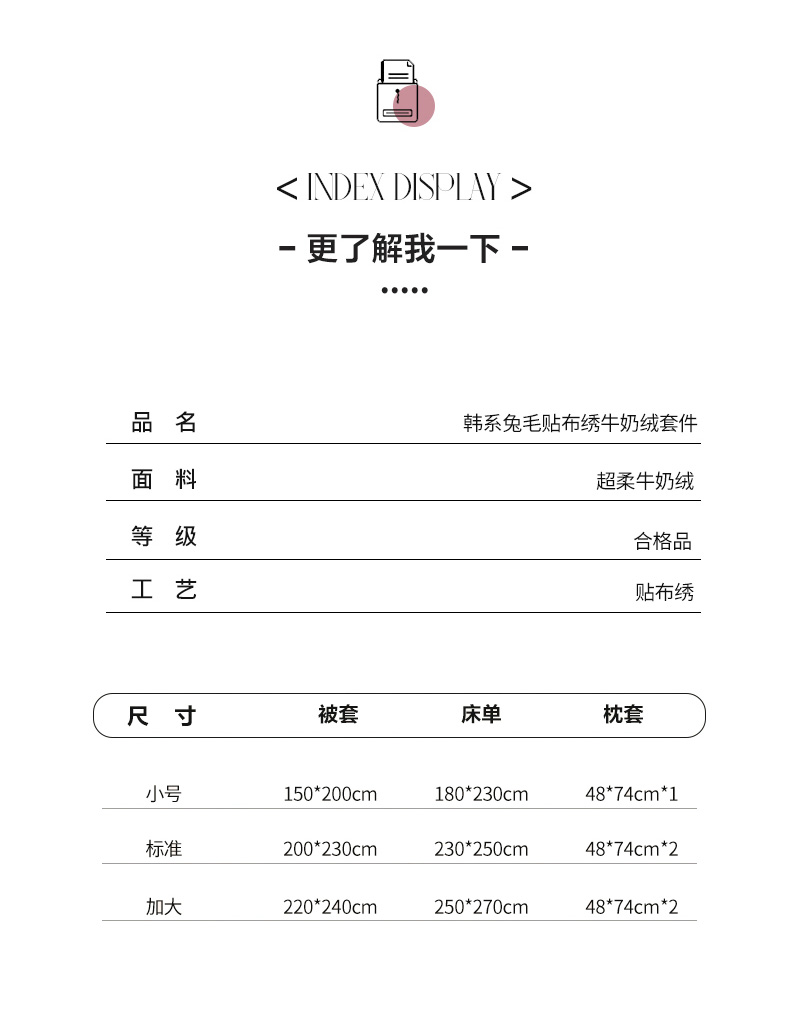 商品名称:(总)顾里家纺 2025新款韩系兔毛贴布绣牛奶绒四件套