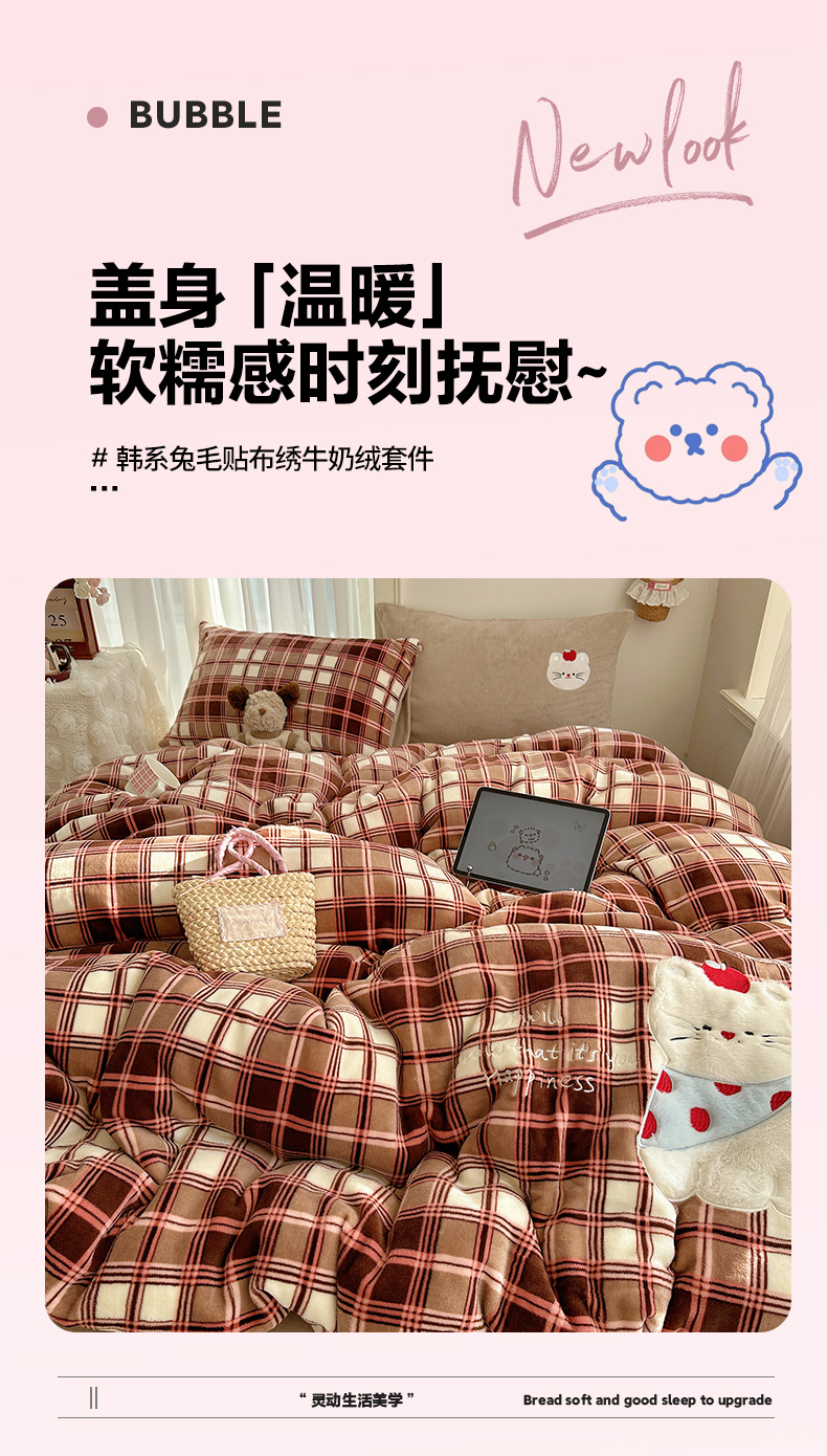 (总)顾里家纺 2024新款ins韩风甜感刺绣标牛奶绒四件套,蛋糕狗狗,烛台小熊,ins可颂,ins苹果,ins沙发狗,ins小象,ins樱桃猫
