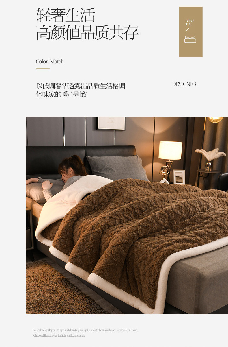 印季家纺 2025秋冬新款三层夹棉加厚-塔肤绒毛毯毯子多功能盖毯 奶茶棕