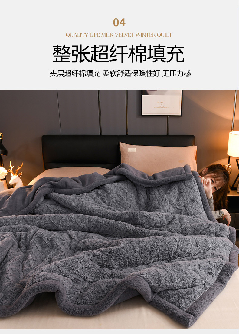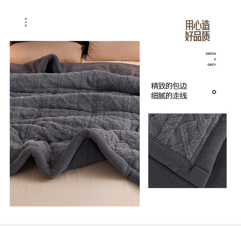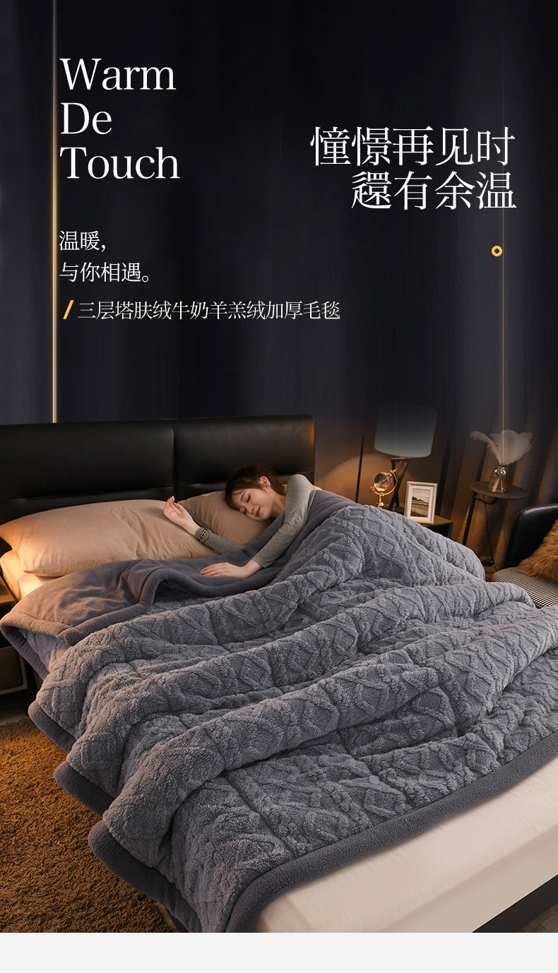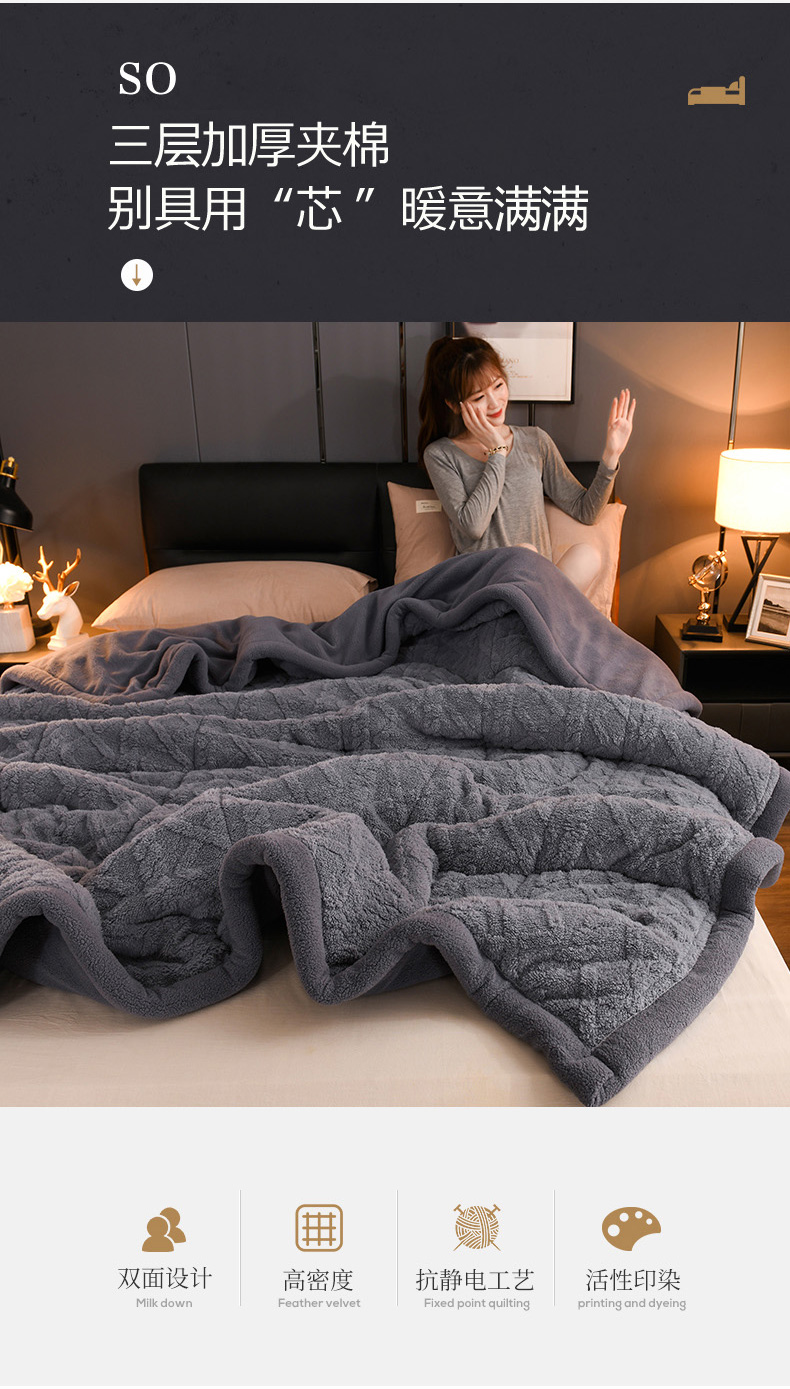 印季家纺 2025秋冬新款三层夹棉加厚-塔肤绒毛毯毯子多功能盖毯 烟灰+灰