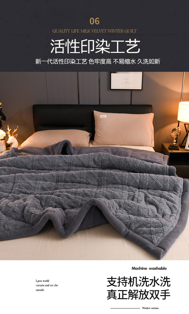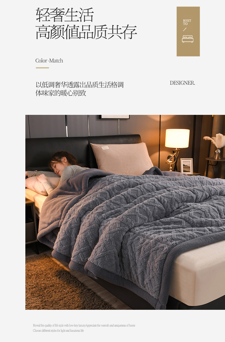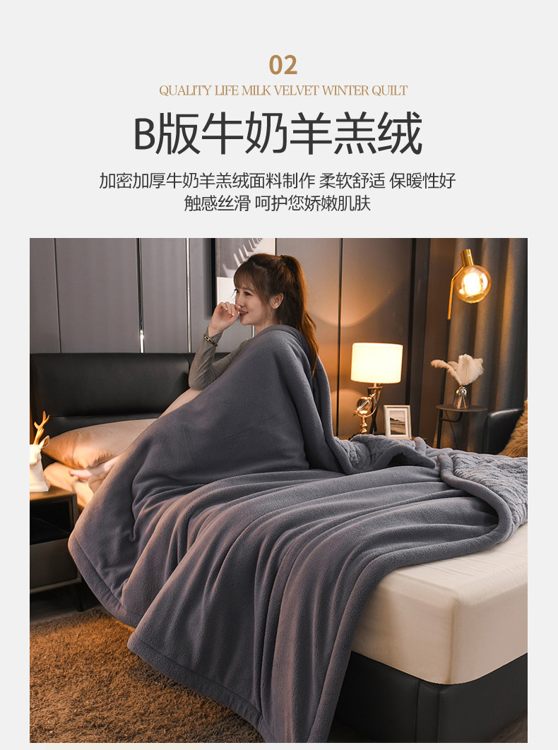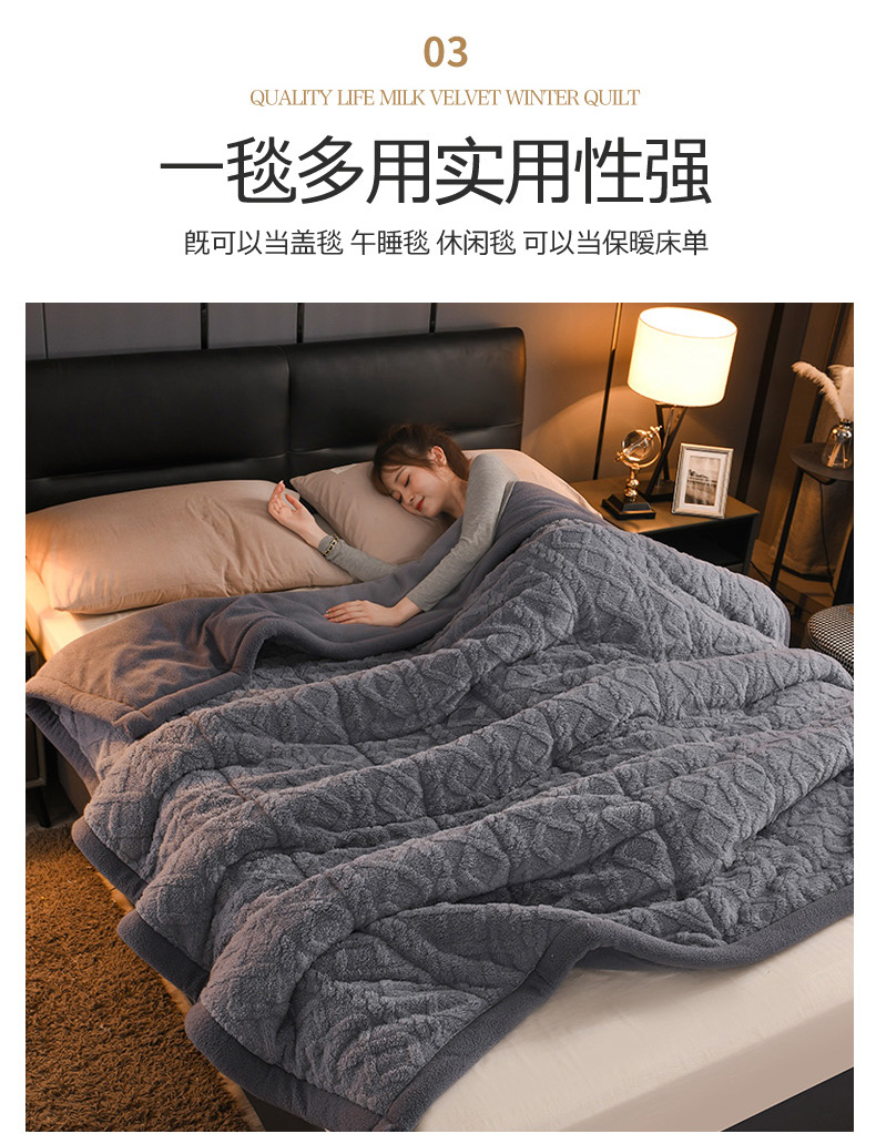 印季家纺 2025秋冬新款三层夹棉加厚-塔肤绒毛毯毯子多功能盖毯 烟灰+灰