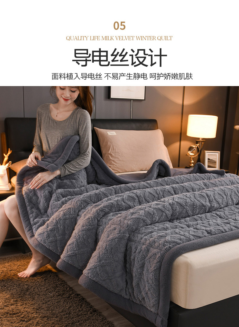 商品名称:印季家纺 2025秋冬新款三层夹棉加厚-塔肤绒毛毯毯子多功能盖毯 烟灰+灰