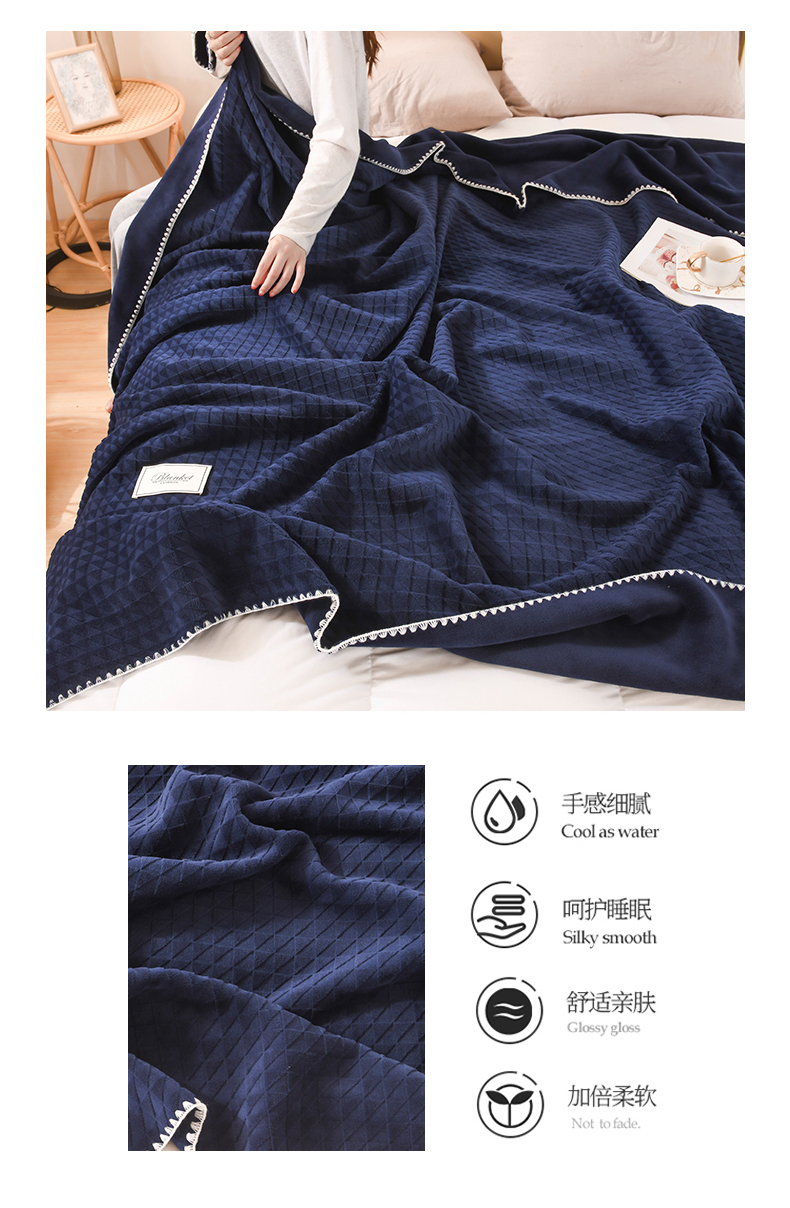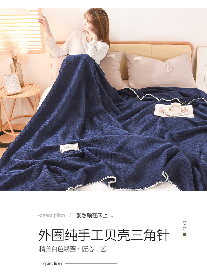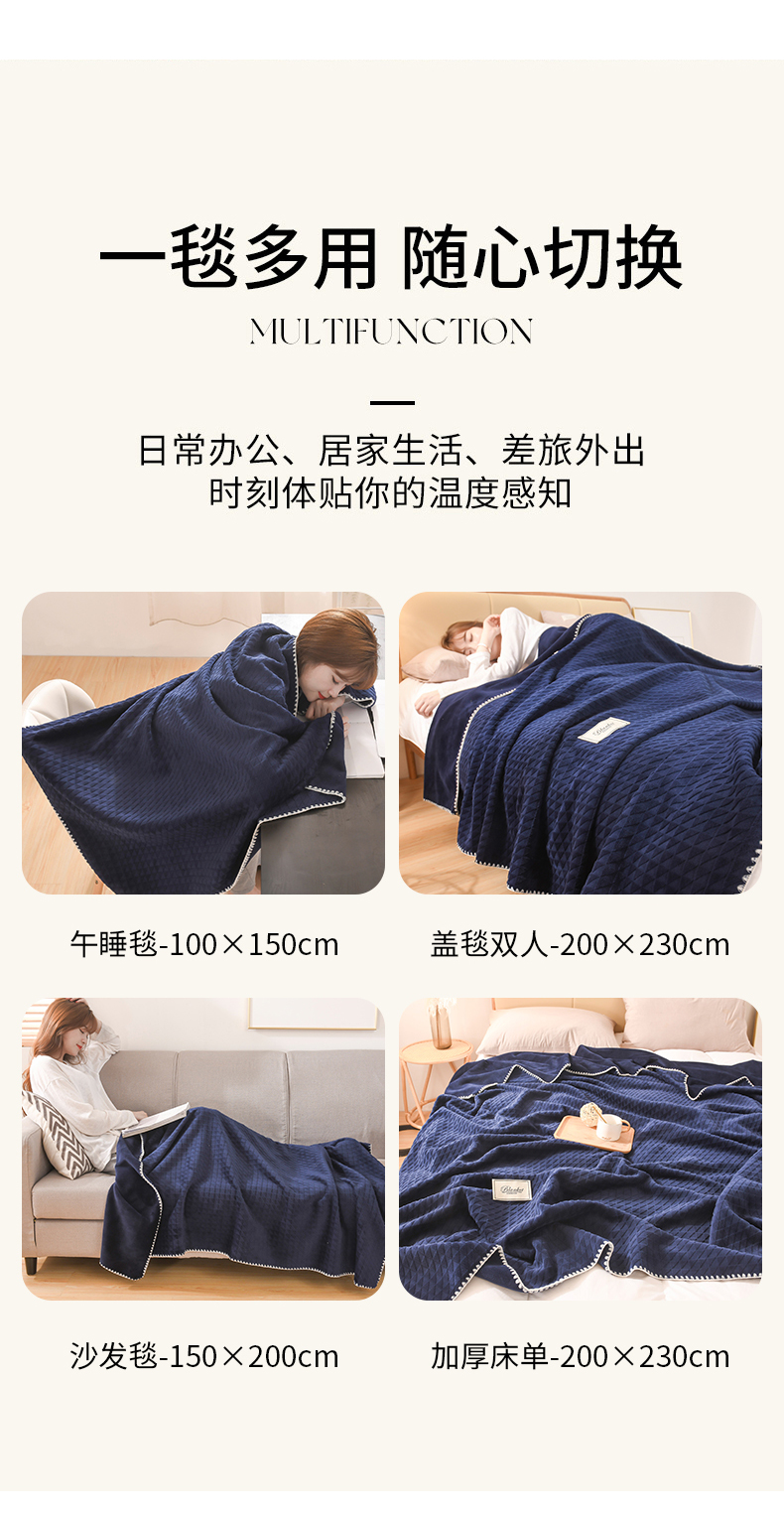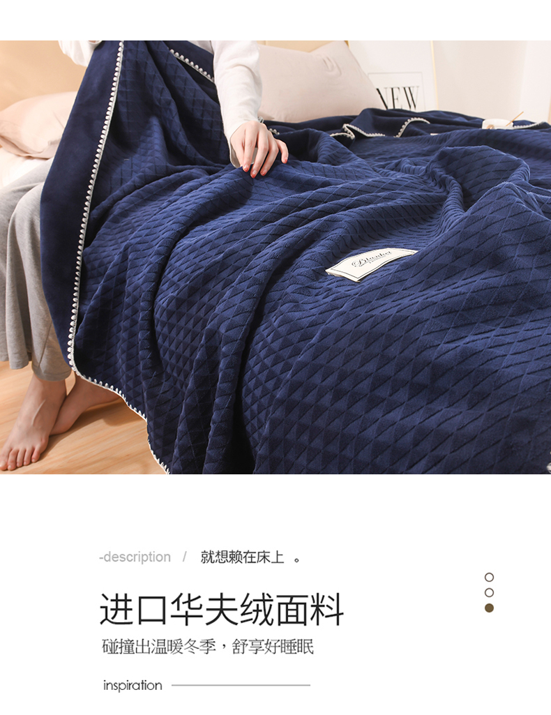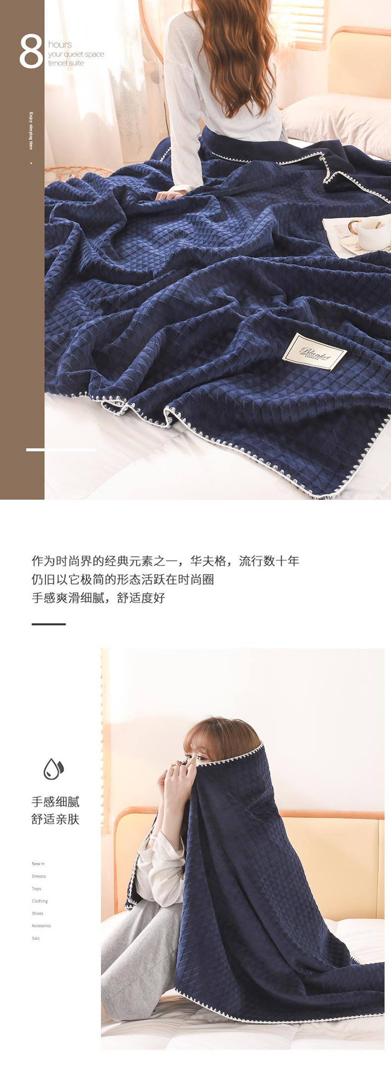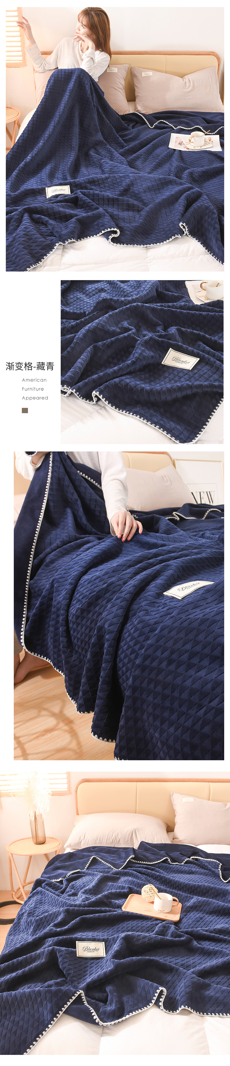 商品名称:印季家纺 2025新款华夫格牛奶绒复合毛毯毯子 渐变格-藏青