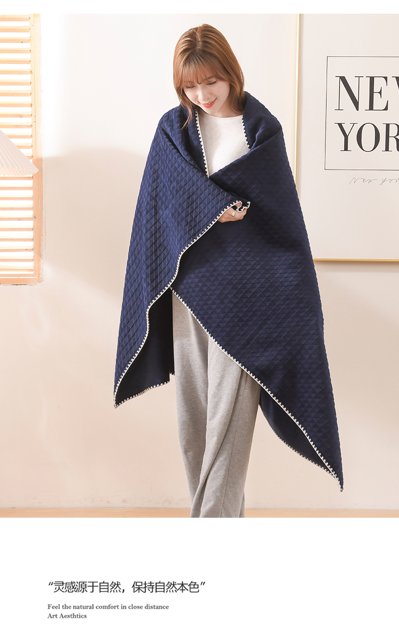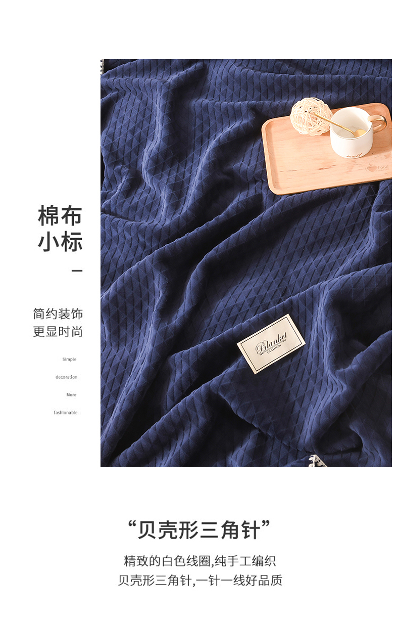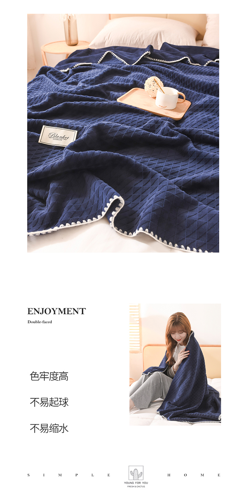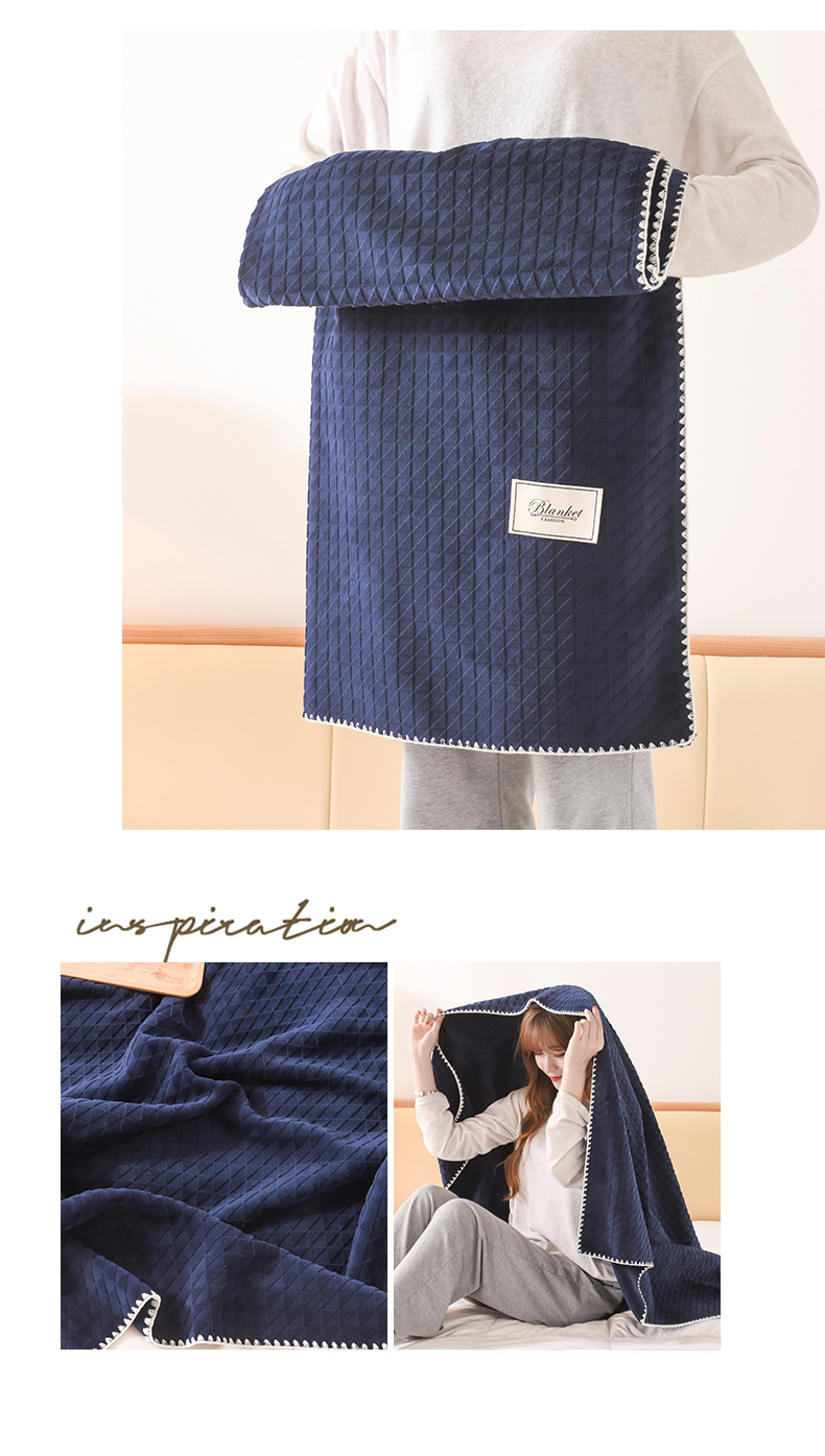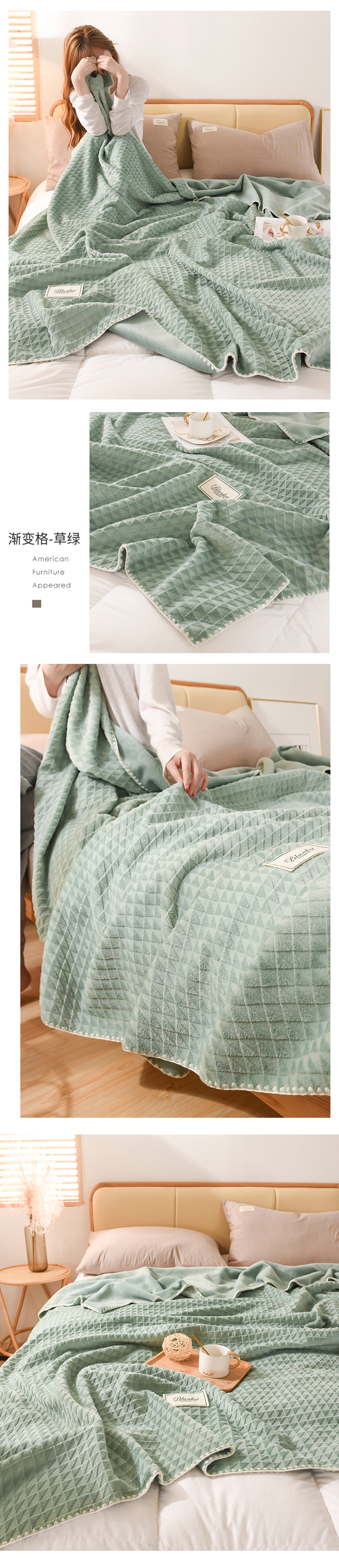商品名称:印季家纺 2025新款华夫格牛奶绒复合毛毯毯子 渐变格-藏青