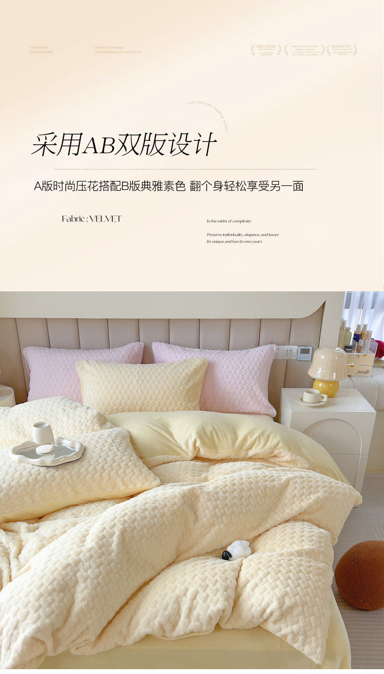 商品名称:(总)印季家纺 2025新款爱心款压花兔毛绒四件套