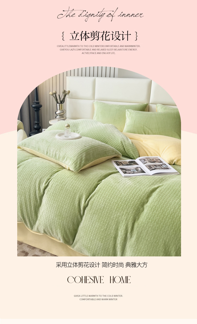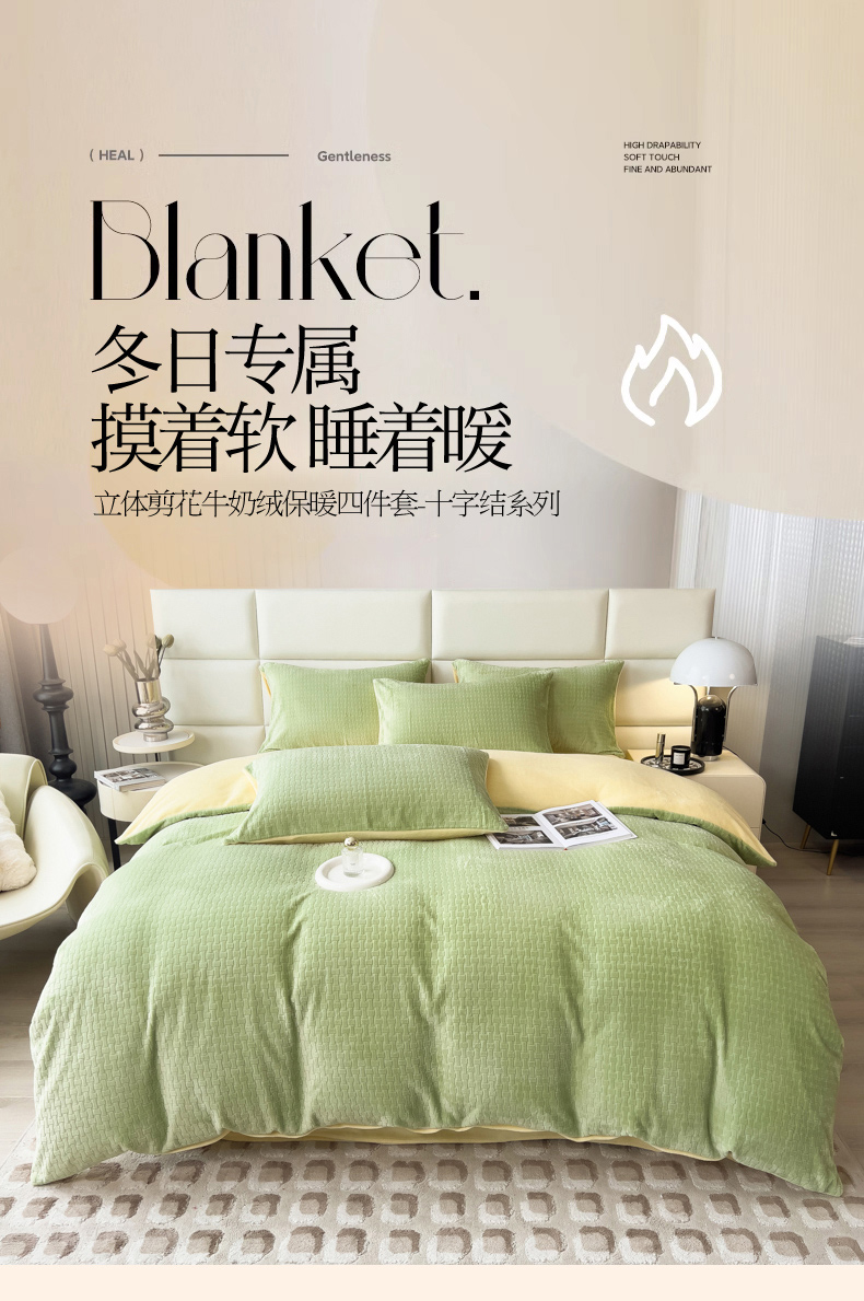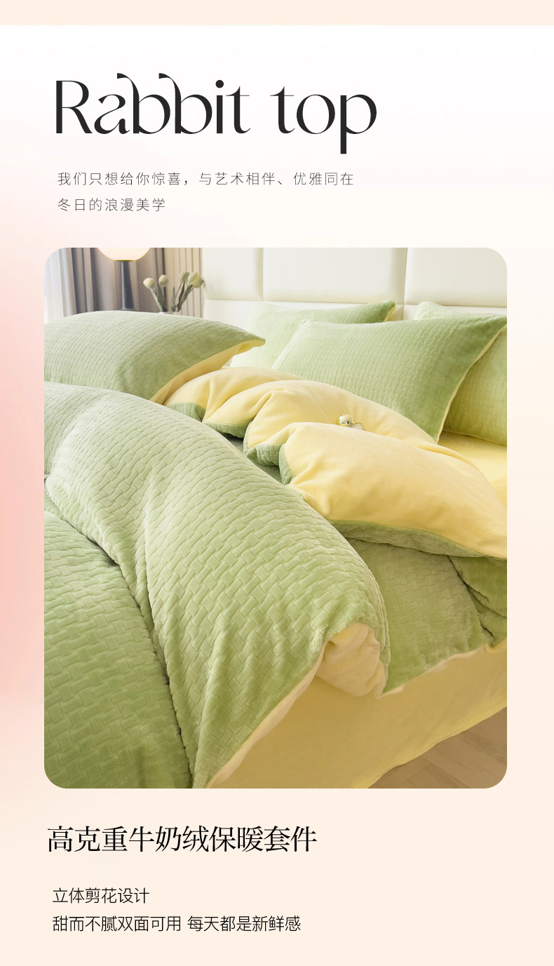 当前位置: 91家纺网 > 商品网购 > 床品套件 > 四件套 > 牛奶绒四件套 > 印季家纺 2025新款立体剪花十字结牛奶绒四件套 草绿-亮黄