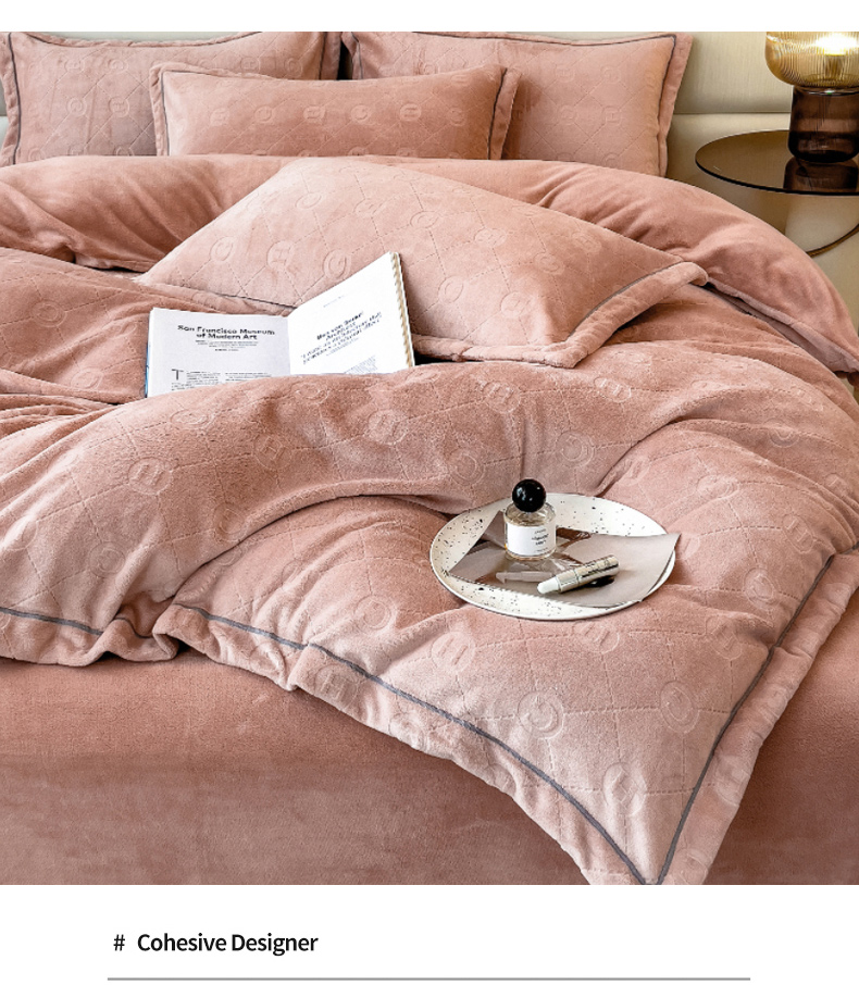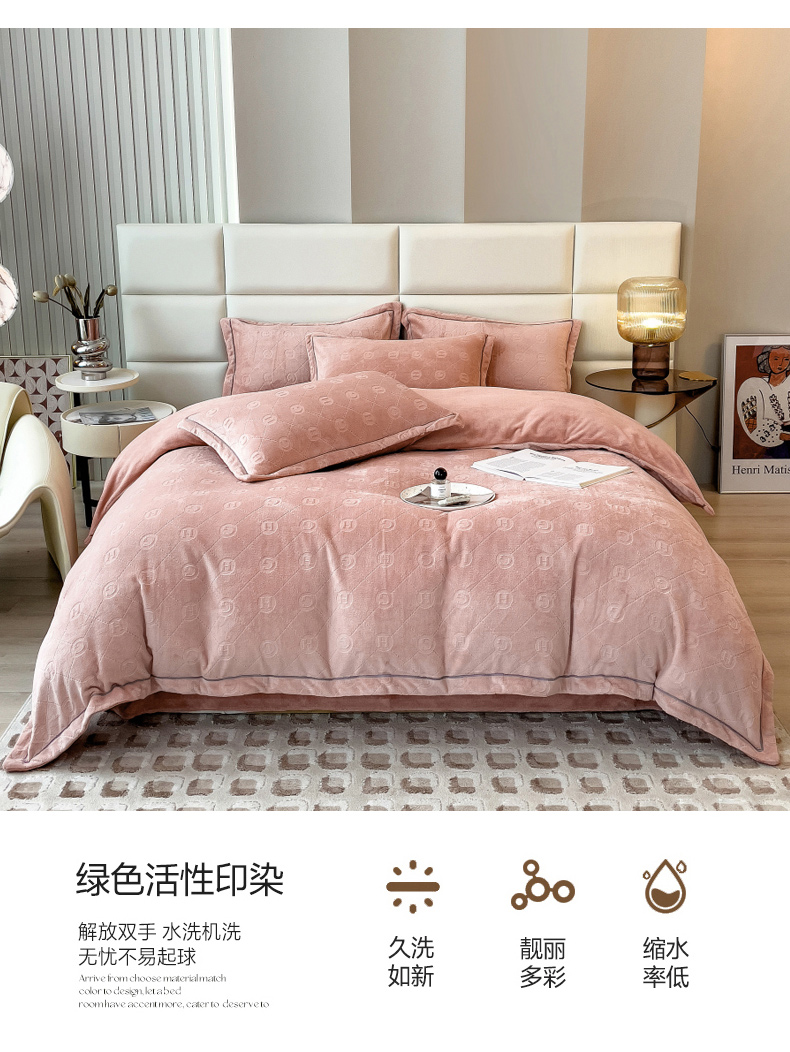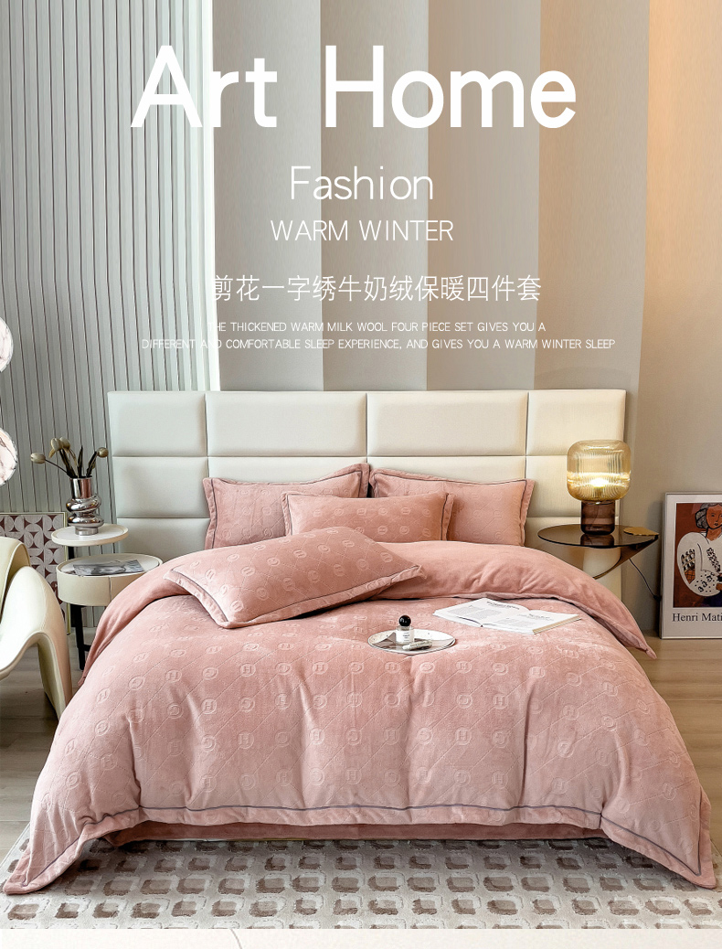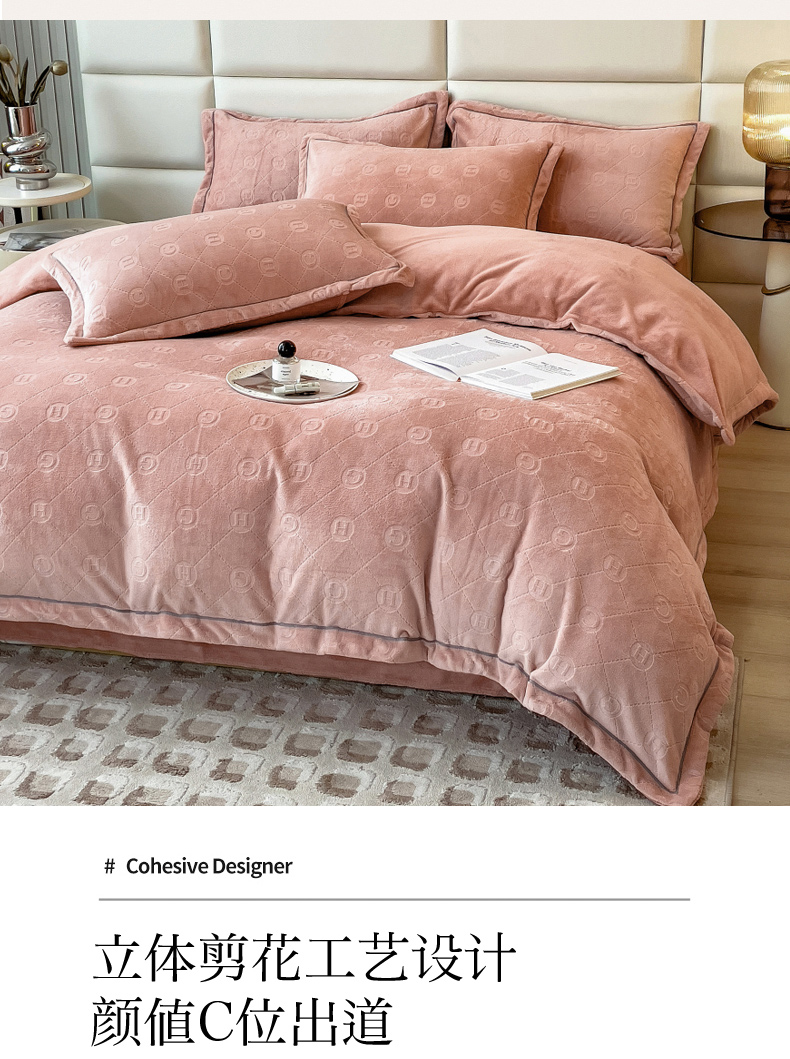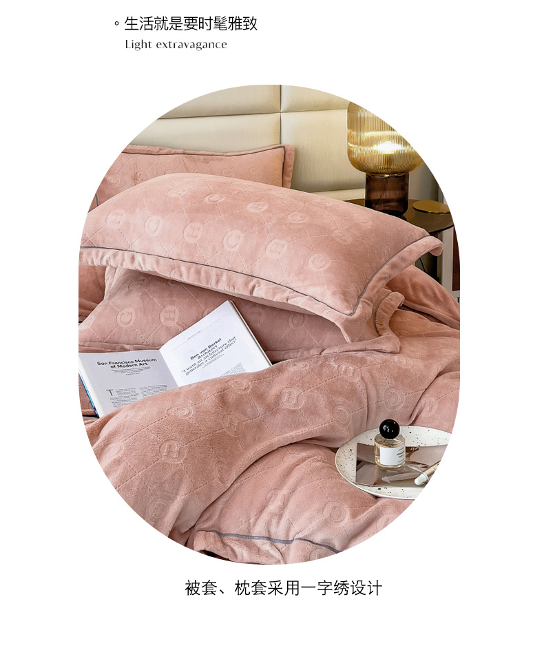 当前位置: 91家纺网 > 商品网购 > 床品套件 > 四件套 > 牛奶绒四件套 > 印季家纺 2025新款HG剪花一字绣牛奶绒四件套 豆沙