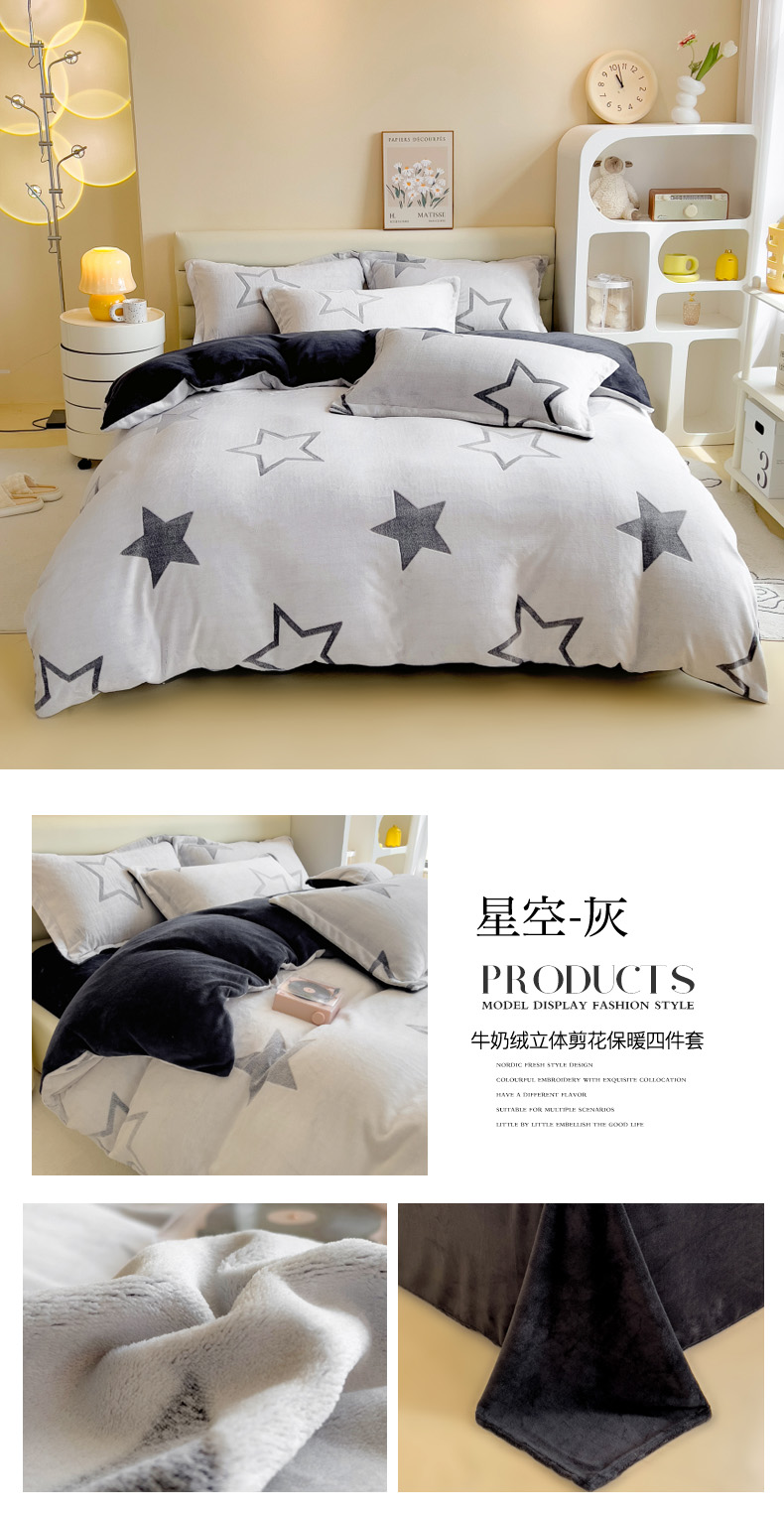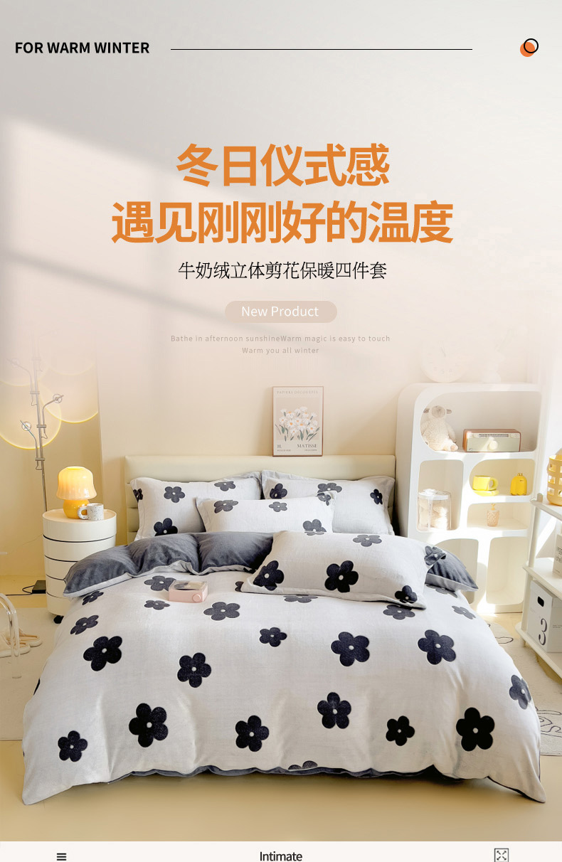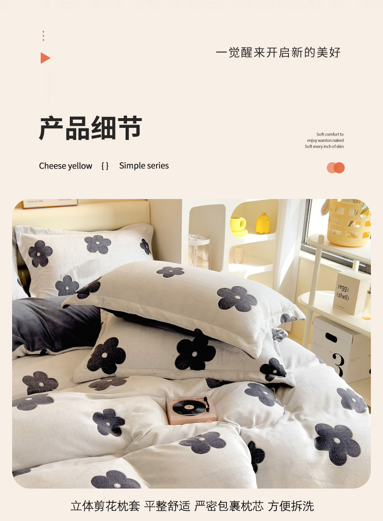 当前位置: 91家纺网 > 商品网购 > 床品套件 > 四件套 > 牛奶绒四件套 > 印季家纺 2025新款背印立体剪花牛奶绒四件套 太阳花-藏青
