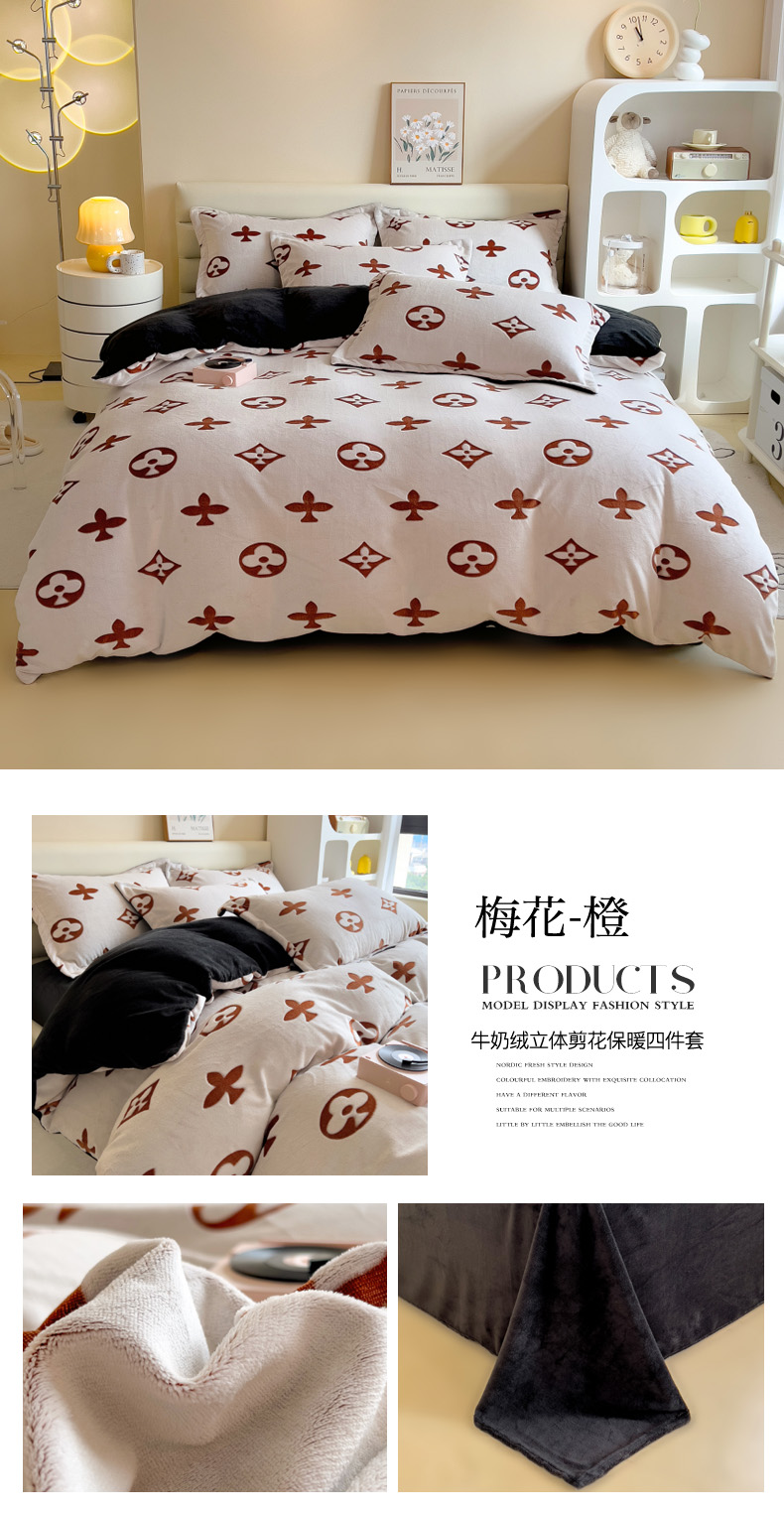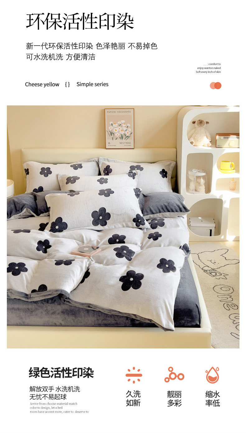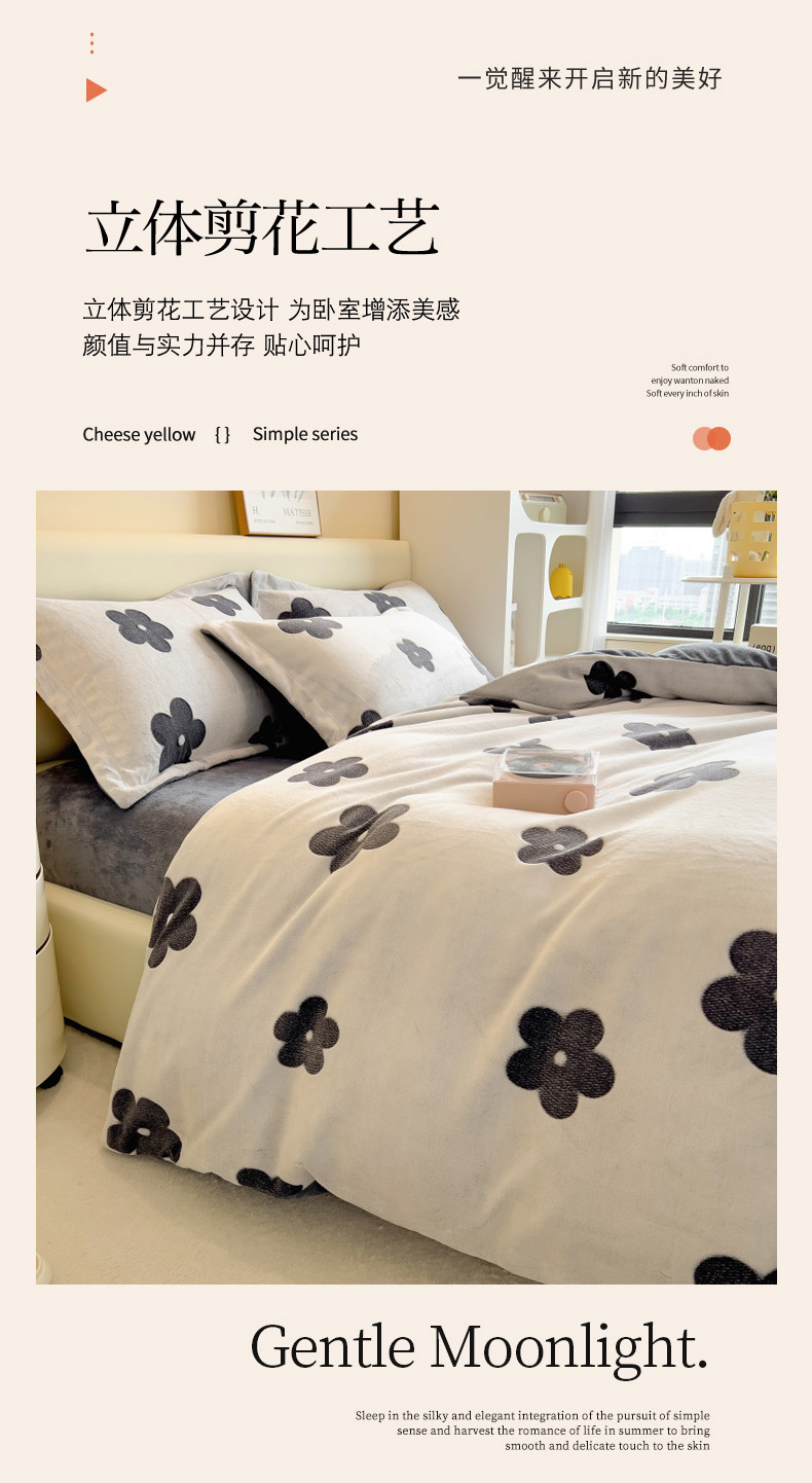 当前位置: 91家纺网 > 商品网购 > 床品套件 > 四件套 > 牛奶绒四件套 > 印季家纺 2025新款背印立体剪花牛奶绒四件套 太阳花-藏青