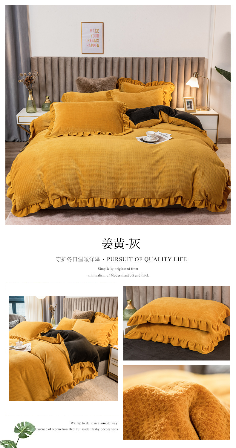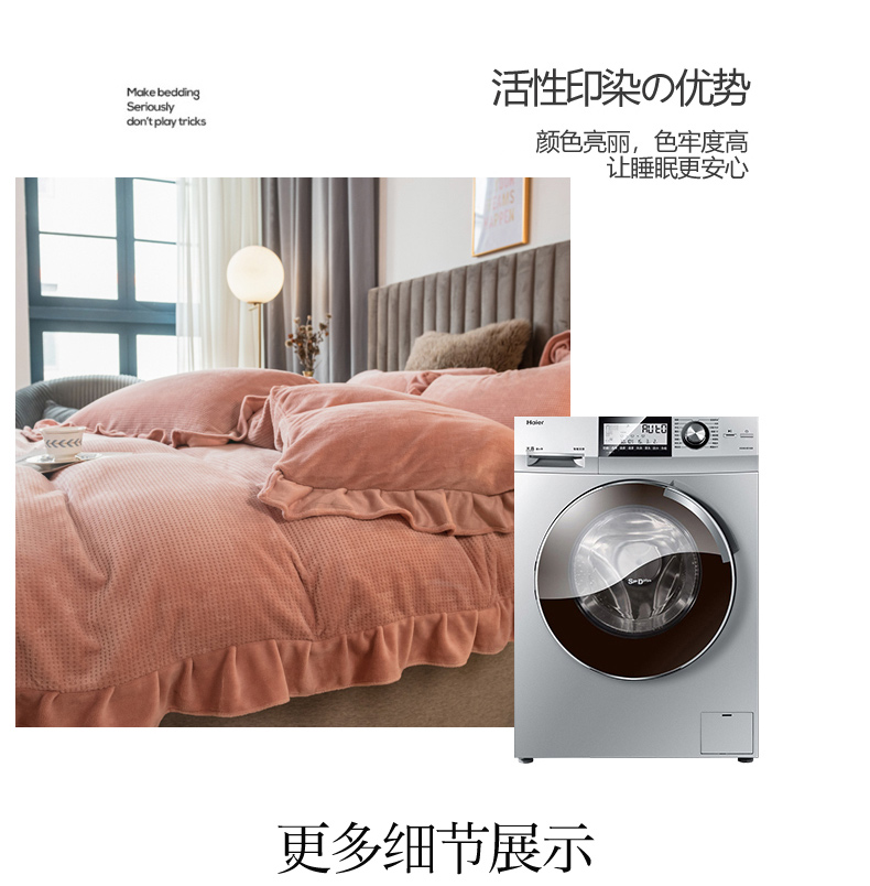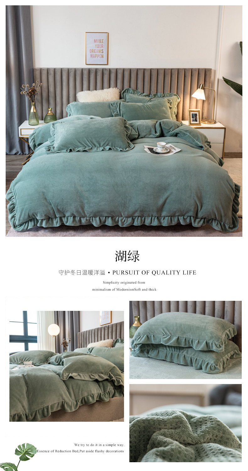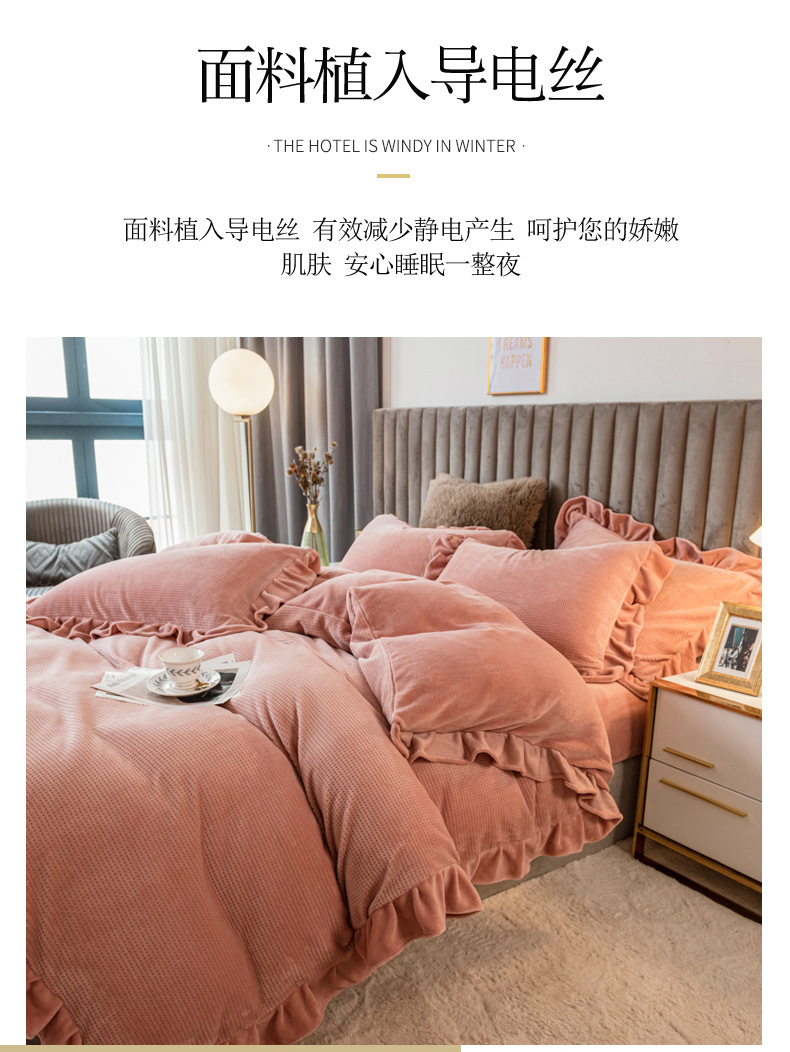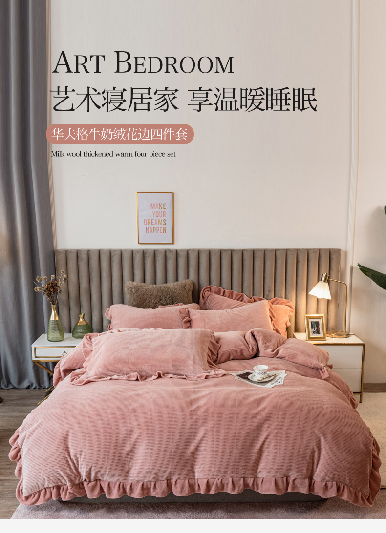 当前位置: 91家纺网 > 商品网购 > 床品套件 > 四件套 > 牛奶绒四件套 > 印季家纺 2025新款华夫格牛奶绒花边四件套 豆沙