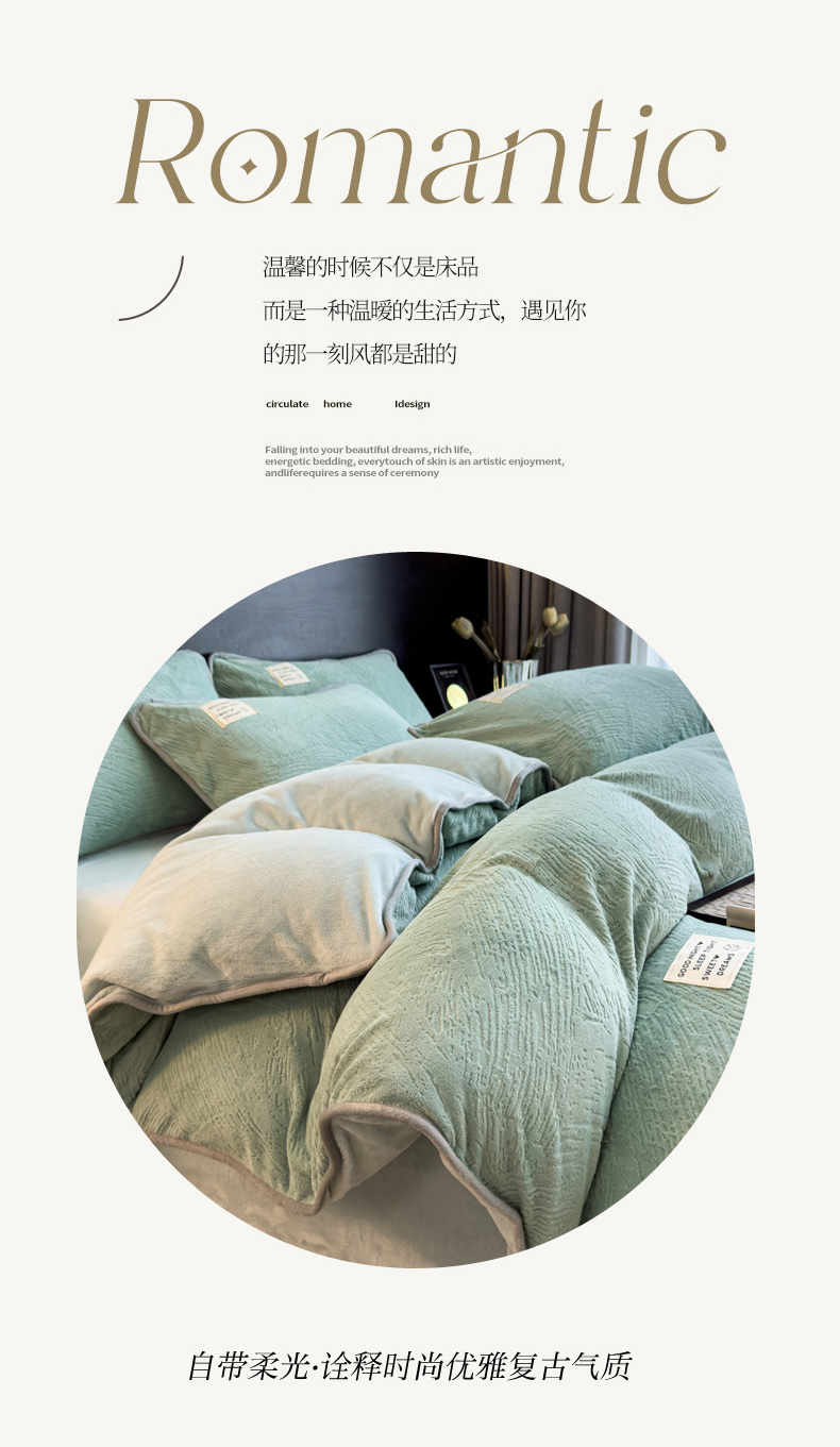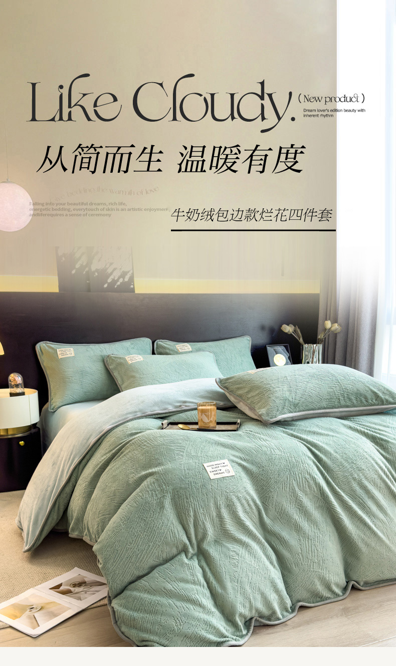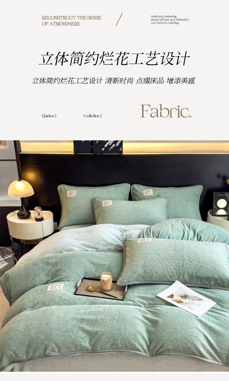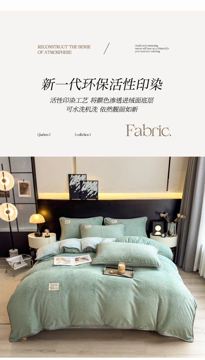 当前位置: 91家纺网 > 商品网购 > 床品套件 > 四件套 > 牛奶绒四件套 > 印季家纺 2025新款牛奶绒包边款烂花四件套 水绿-水绿
