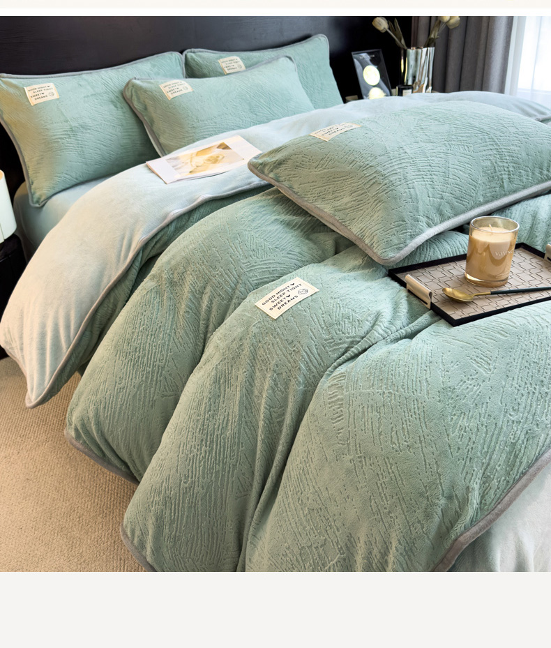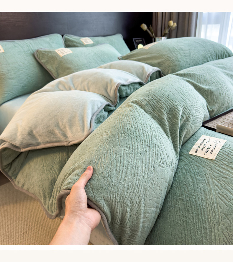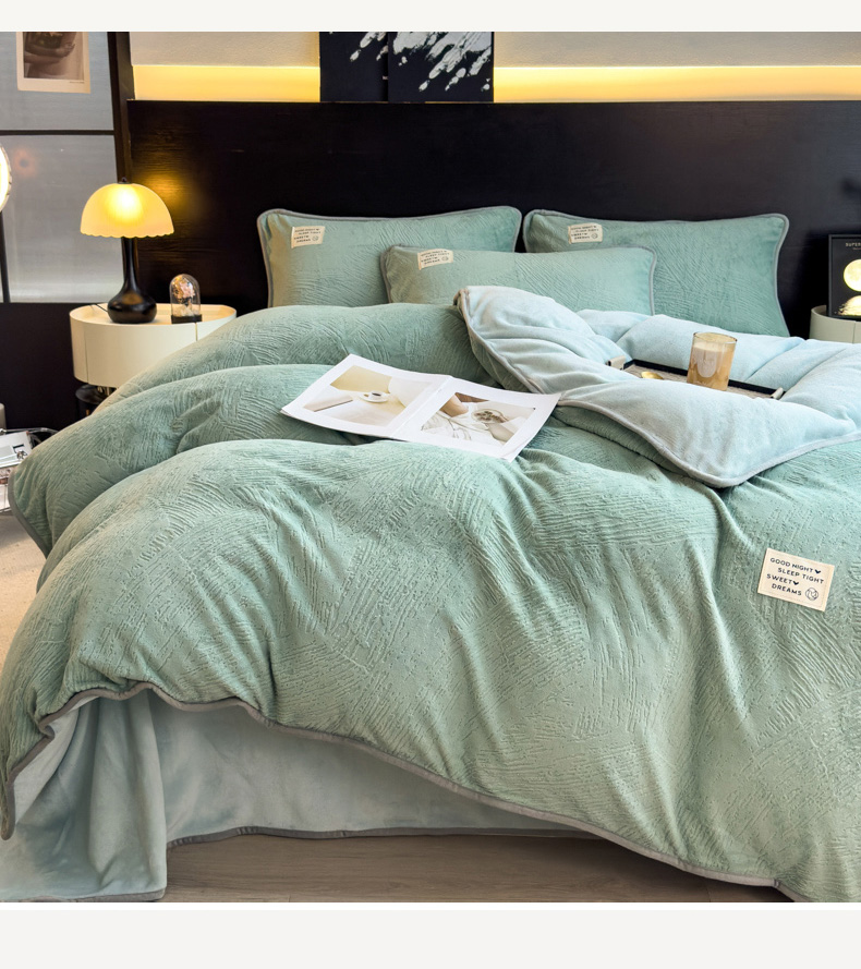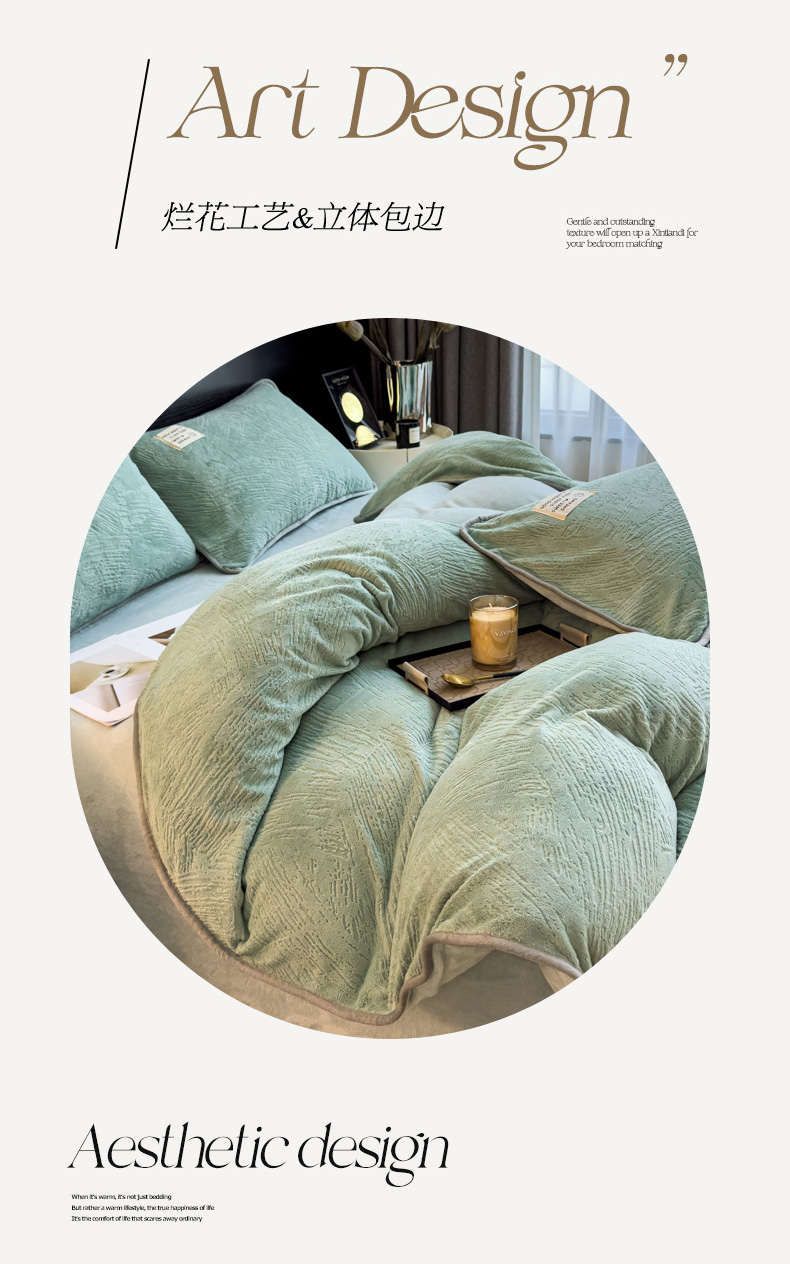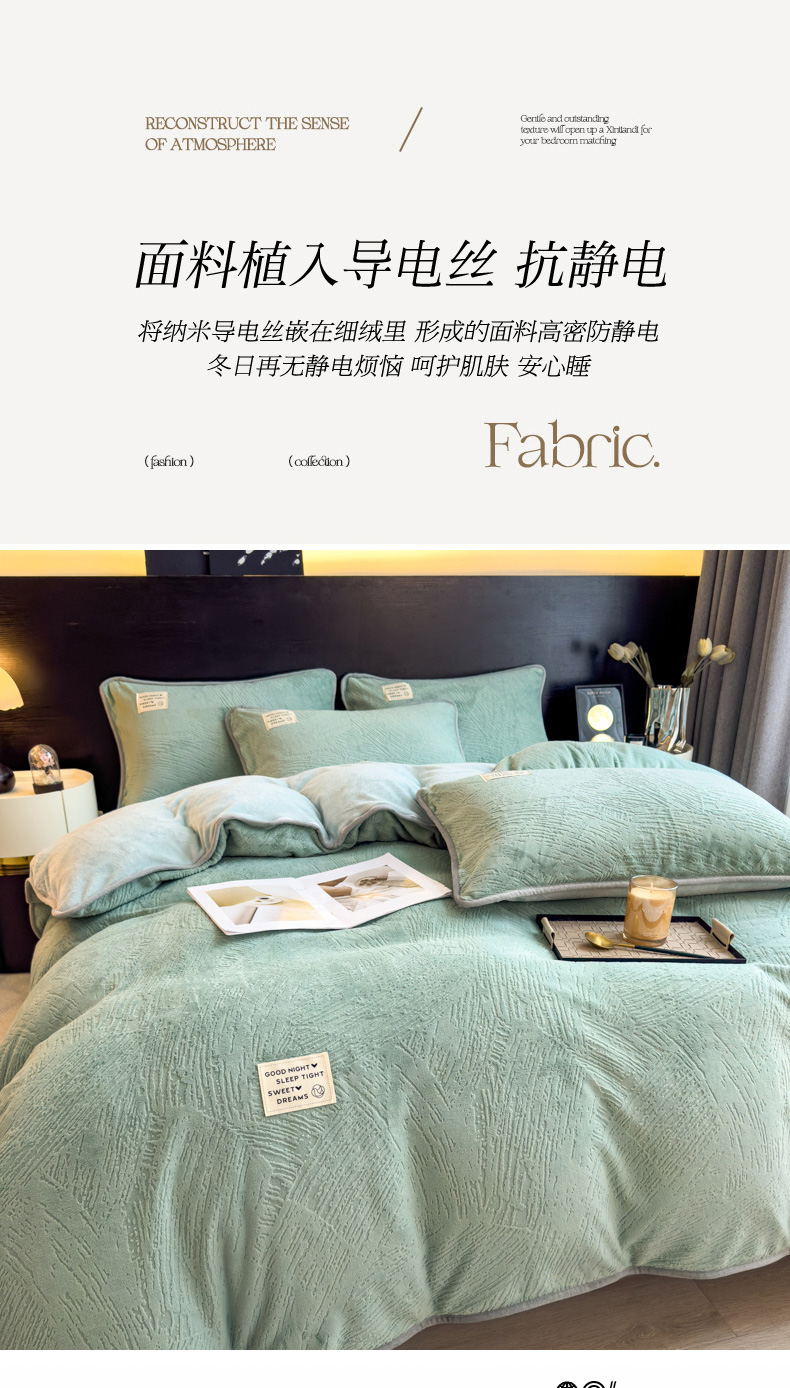 当前位置: 91家纺网 > 商品网购 > 床品套件 > 四件套 > 牛奶绒四件套 > 印季家纺 2025新款牛奶绒包边款烂花四件套 水绿-水绿