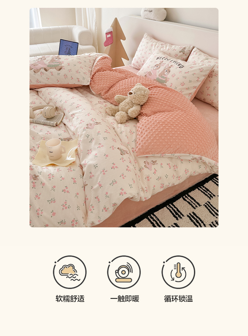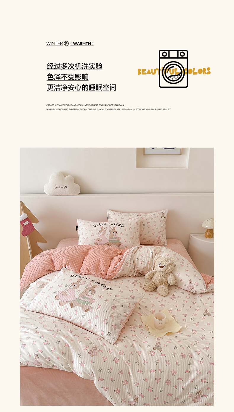 当前位置: 91家纺网 > 商品网购 > 床品套件 > 四件套 > 其它四件套 > RYB红黄兰 2025新款设计师原创灯芯绒+豆豆绒婴儿绒数码印花四件套 萌宠花园