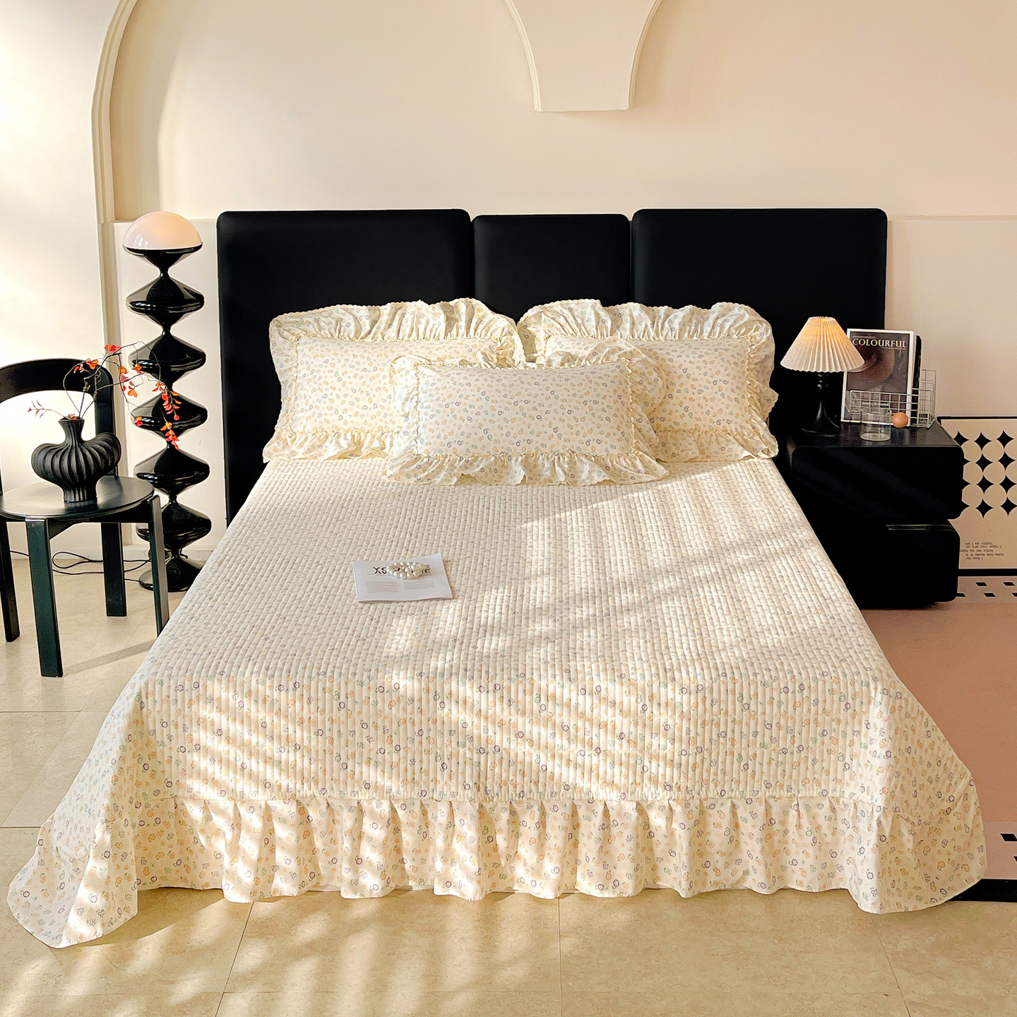 富米莱单品馆 2026新款法式大花边A类古法仿棉云感纱单床盖 大花边-粉樱kt