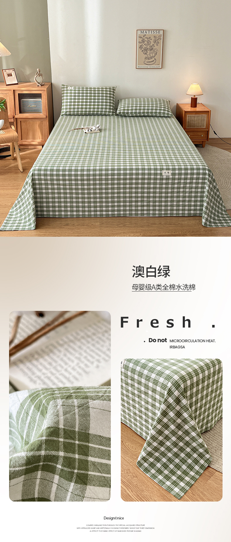 21度C 2026新款A类全棉水洗棉母婴级床单 密条绿