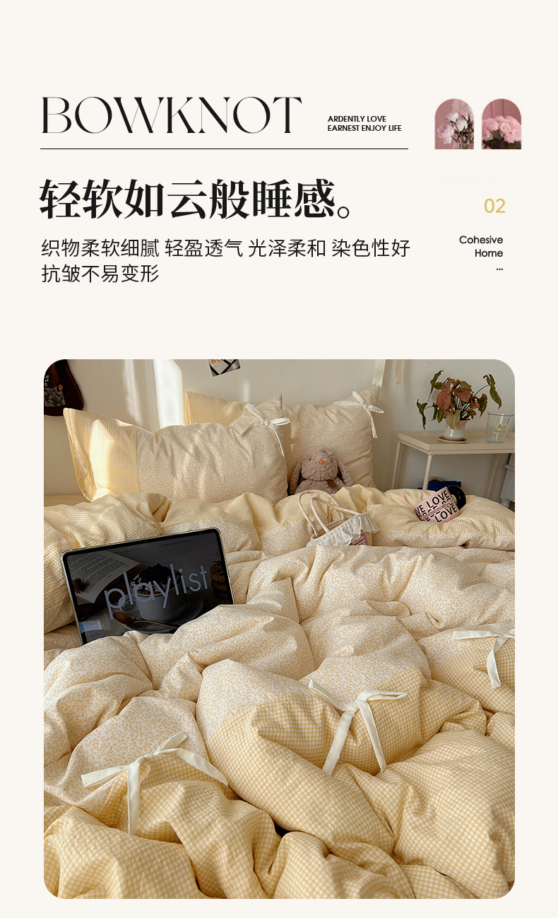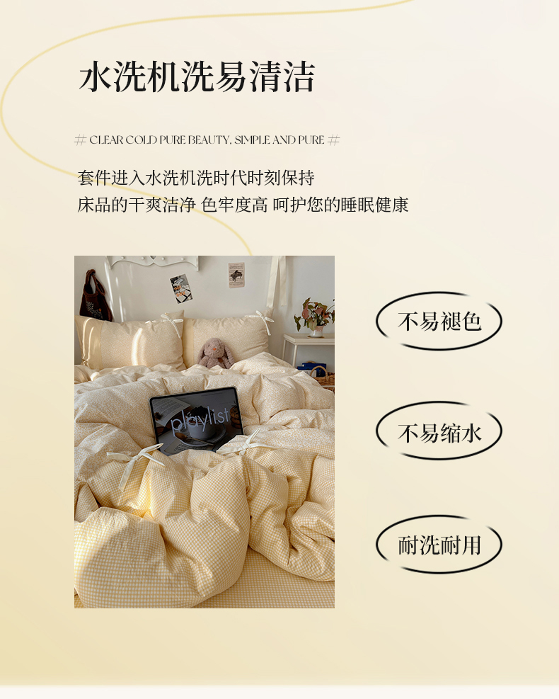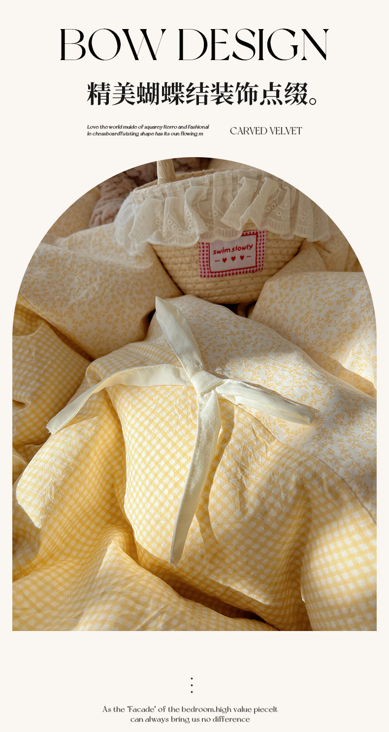 当前位置: 91家纺网 > 商品网购 > 床品套件 > 四件套 > 水洗棉四件套 > 初夏家纺 2026 公主风蝴蝶结A类古法水洗仿棉四件套床上用品三件套被套床单【提供买家秀】 公主蝴蝶结-黄