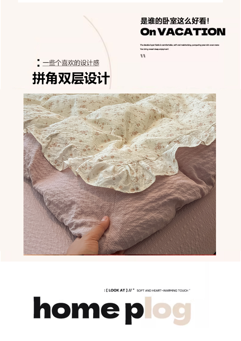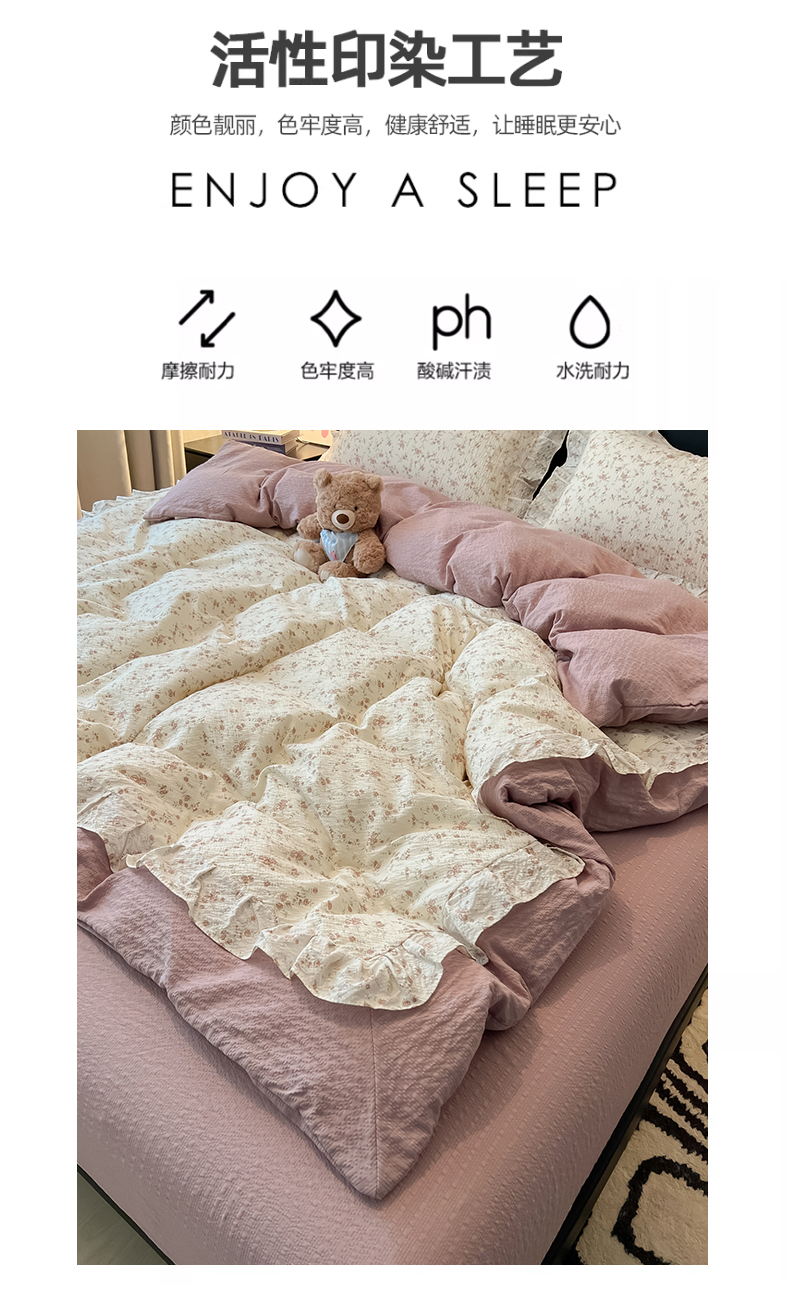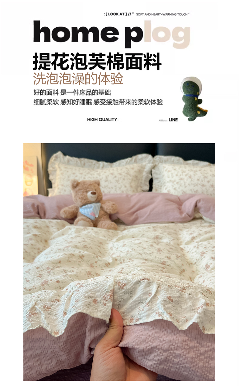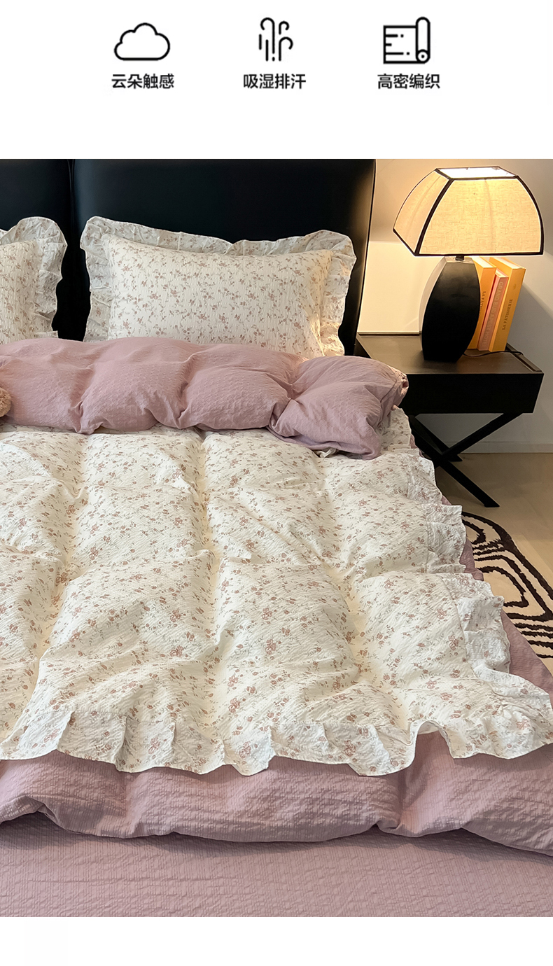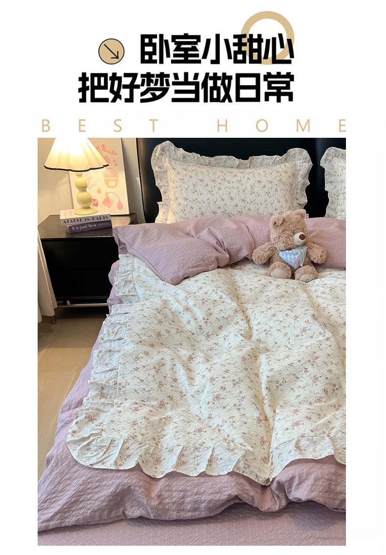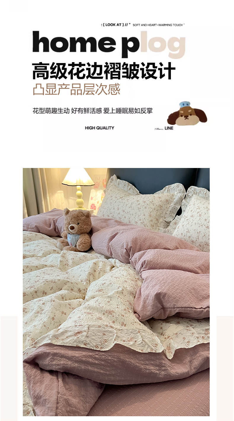 当前位置: 91家纺网 > 商品网购 > 床品套件 > 四件套 > 其它四件套 > 子钦家纺 2026春夏新款提花泡芙棉花边拼角工艺床单床笠四件套-卡哇伊 卡哇伊-美好时光