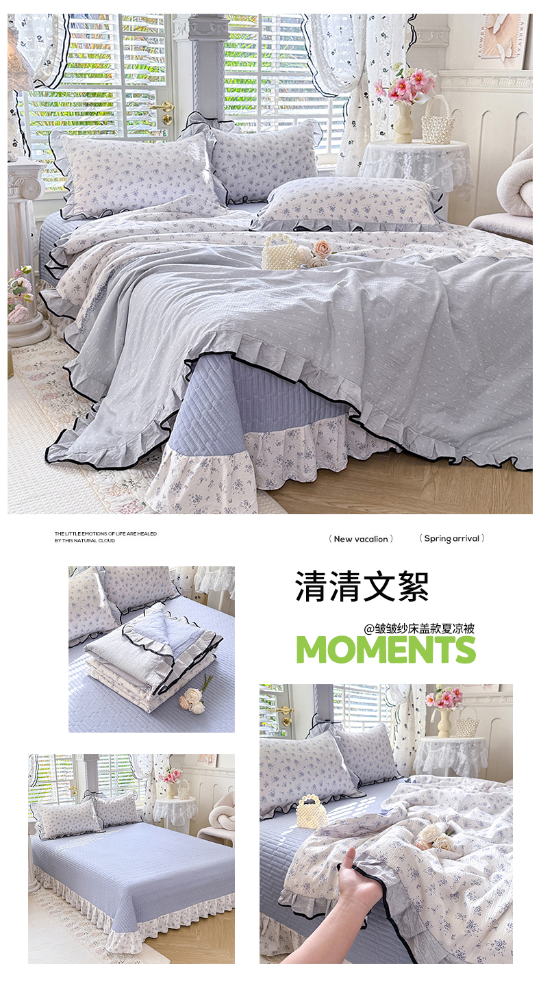 韩约家纺 2026春夏新款皱皱纱床盖款夏被夏凉被空调被四件套 兰蝶香