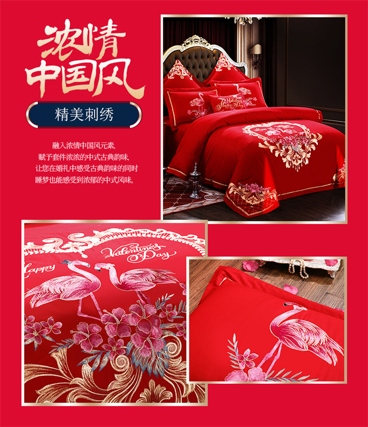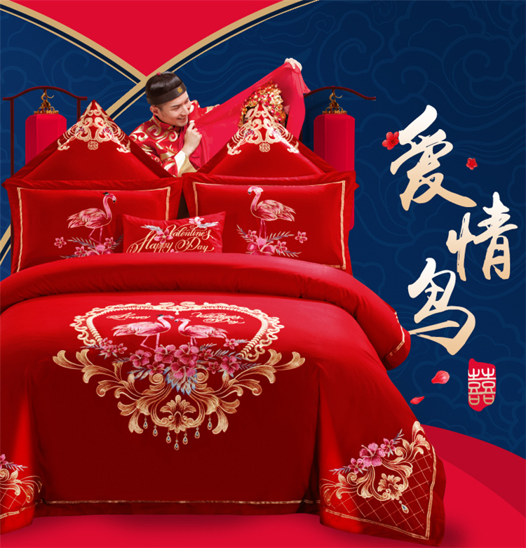千禧婚庆专供 2019新款喷气全棉婚庆四件套多件套 爱情鸟