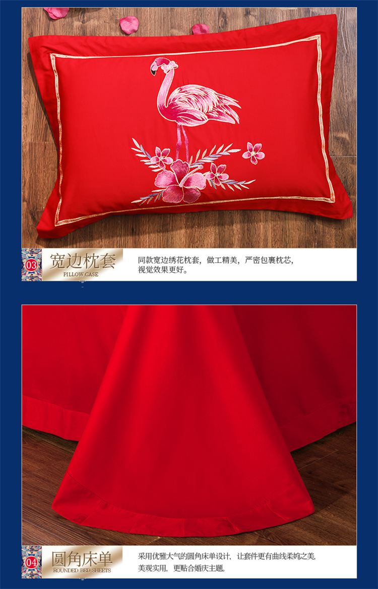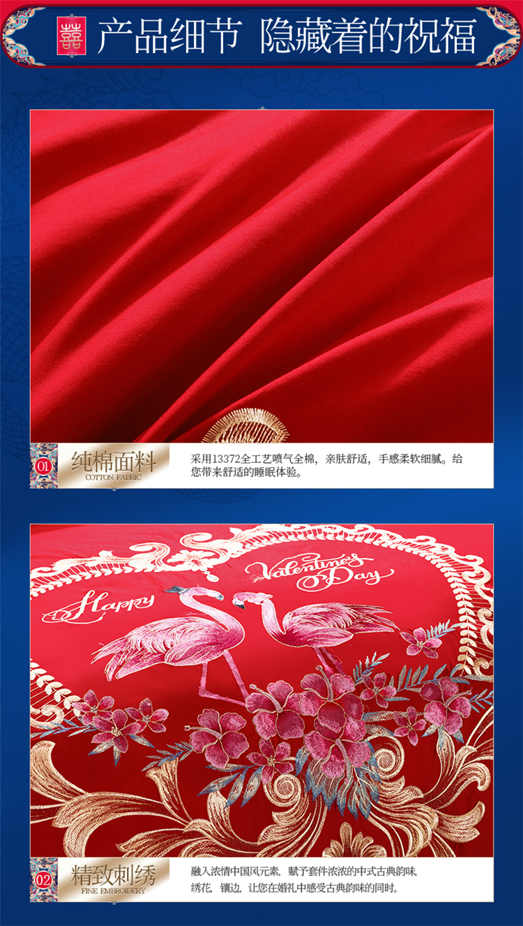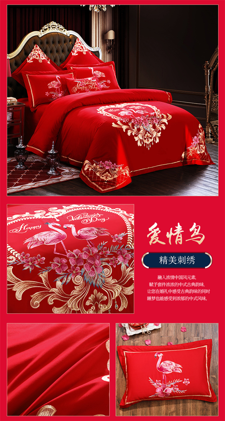 商品名称:千禧婚庆专供 2019新款喷气全棉婚庆四件套多件套 爱情鸟