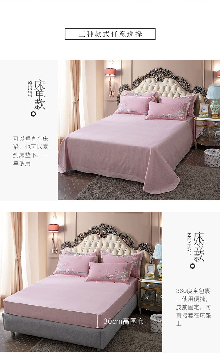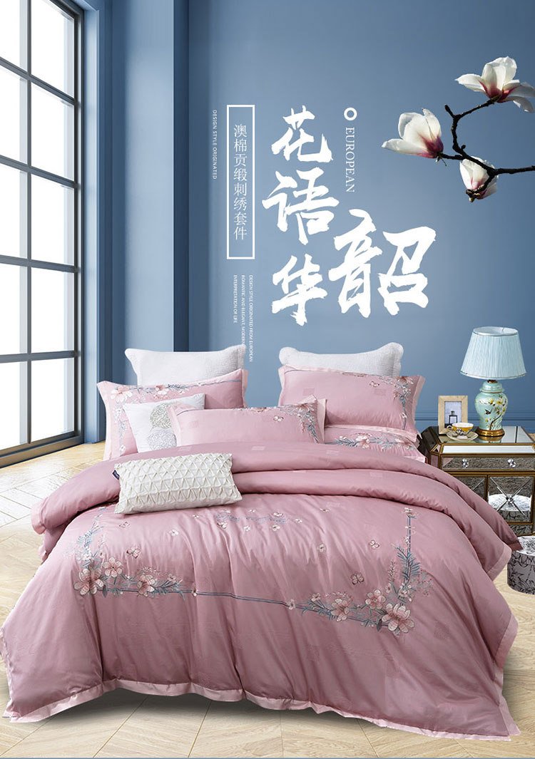 总兴美佳100S澳棉高端绣花床单床裙床笠四件套花语韶华牡丹莎